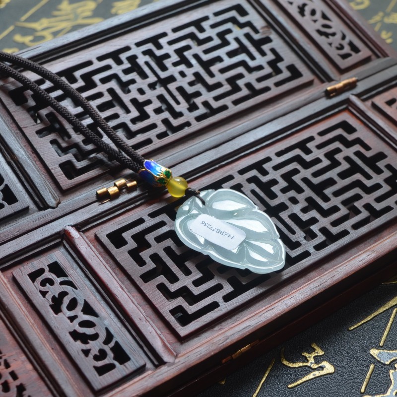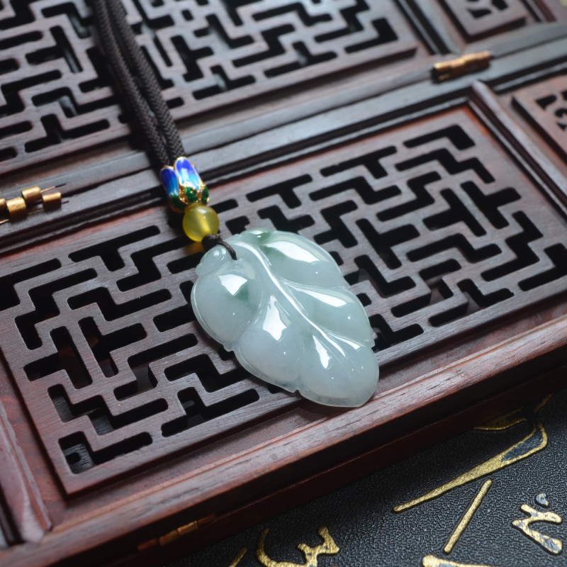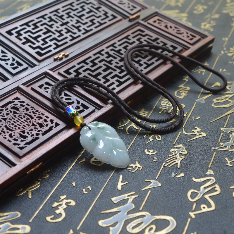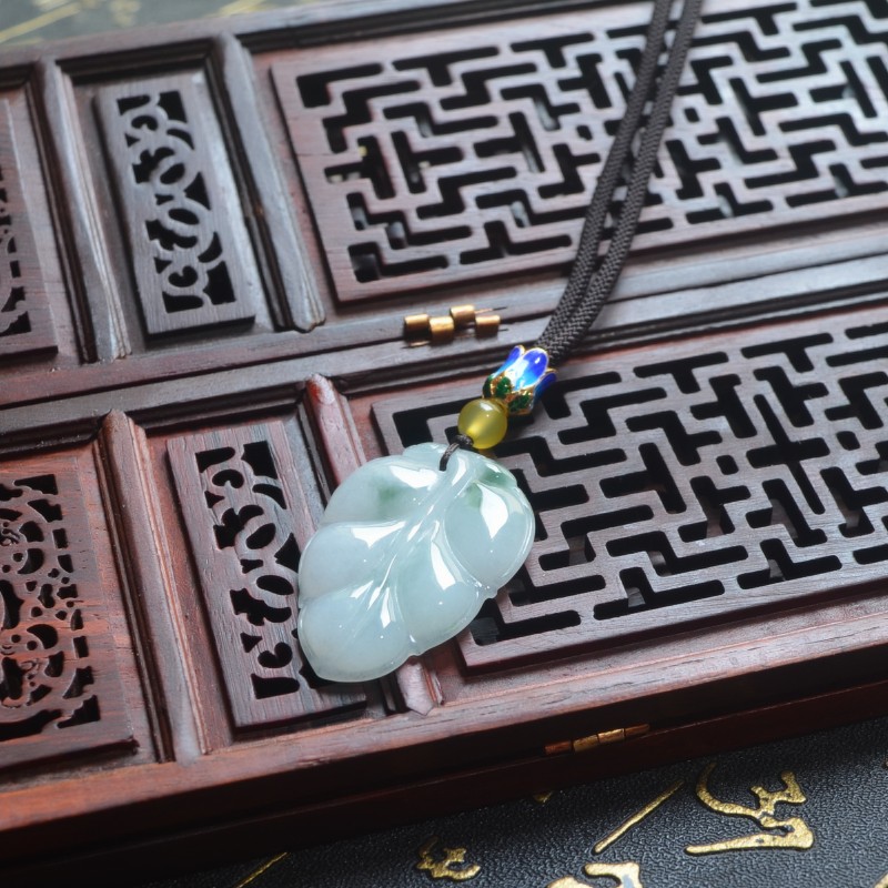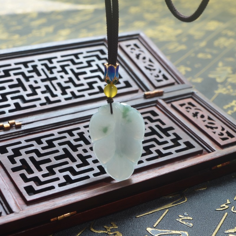 正品A货缅甸天然飘翠花翡翠树叶吊坠玉叶子带证书事业有成玉坠
