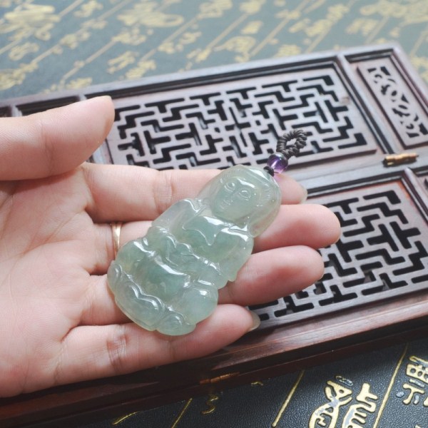 天然翡翠玉观音吊坠男士玉坠玉项链缅甸A货冰种玉石大号挂件玉坠