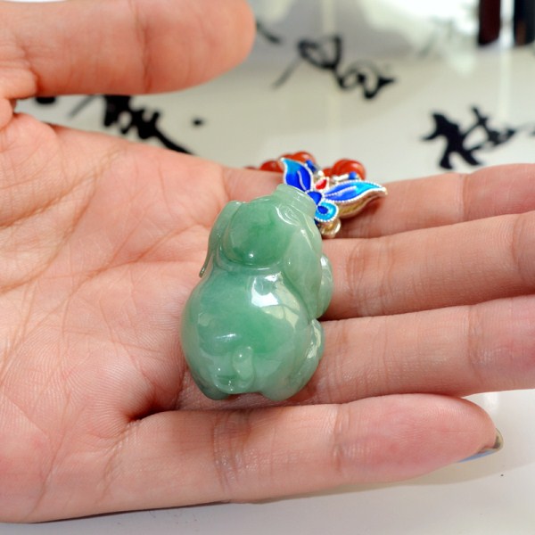 正品飘花带绿翡翠吊坠生肖玉猪挂件立体玉石玉坠男女款项链民族风