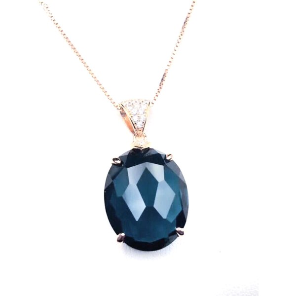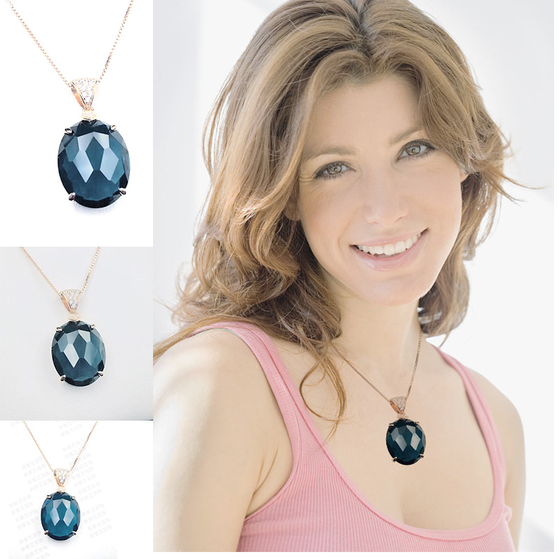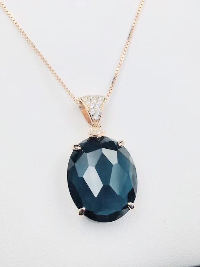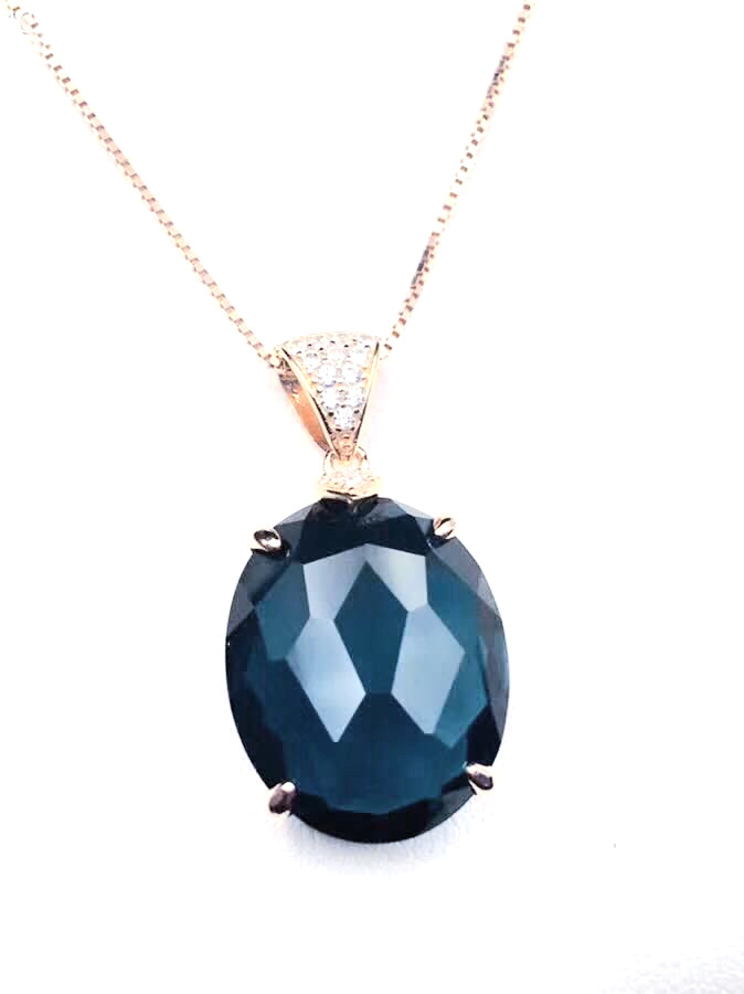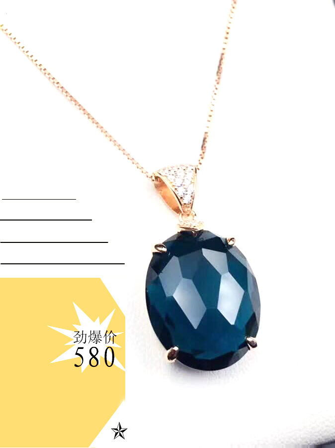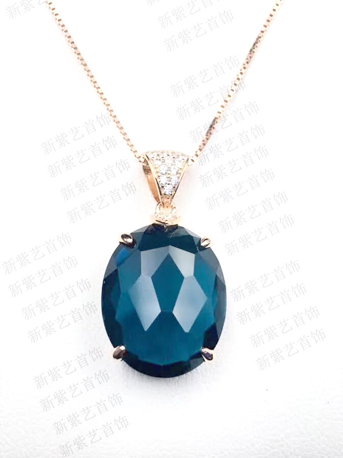 S925银镶嵌天然水晶伦敦蓝托帕石石榴石格仔面吊坠