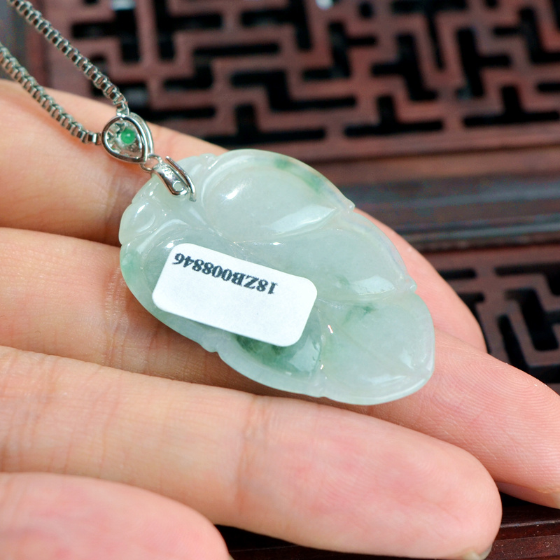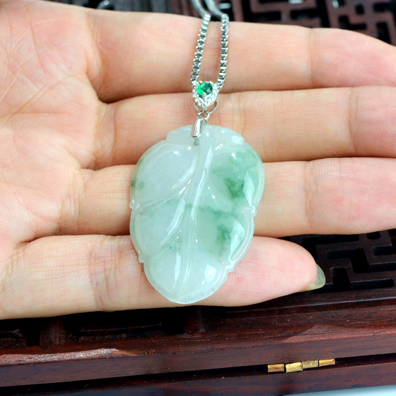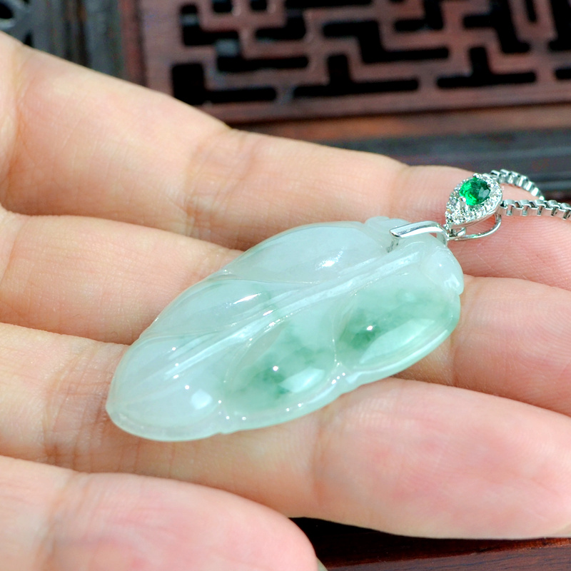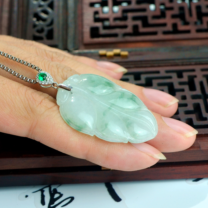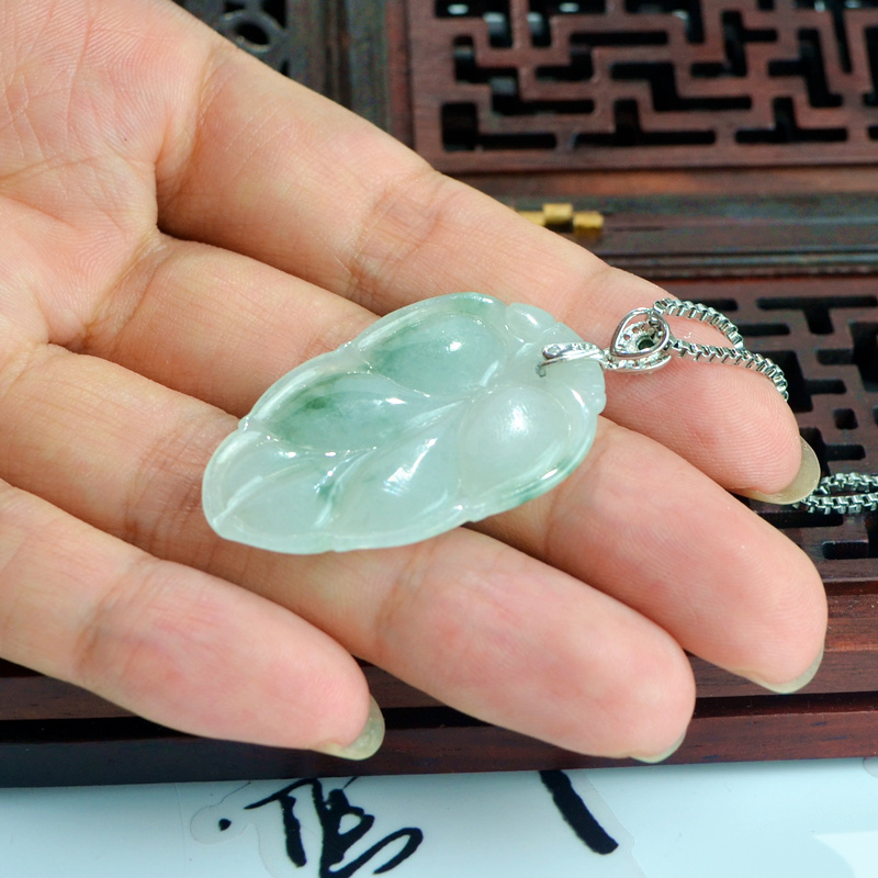 飘花天然翡翠吊坠女款葫芦福瓜如意缅甸A货玉石挂件玉叶子吊坠
