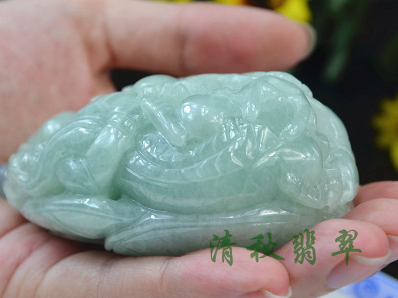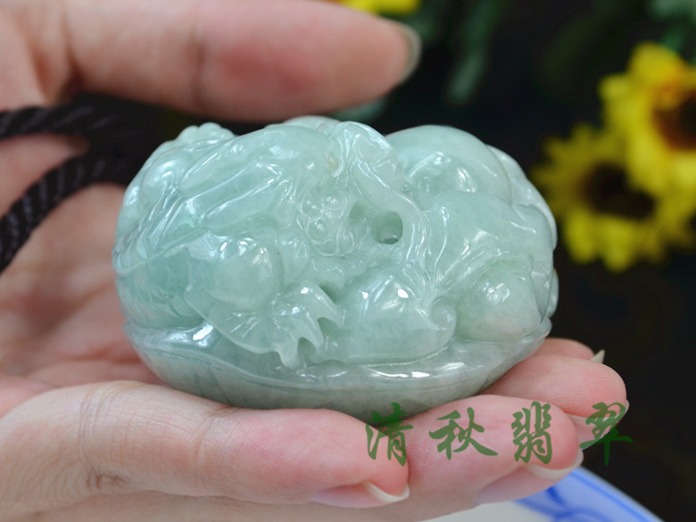 福在眼前 翡翠貔貅把玩 天然a货翡翠手玩 玉貔貅手把件
