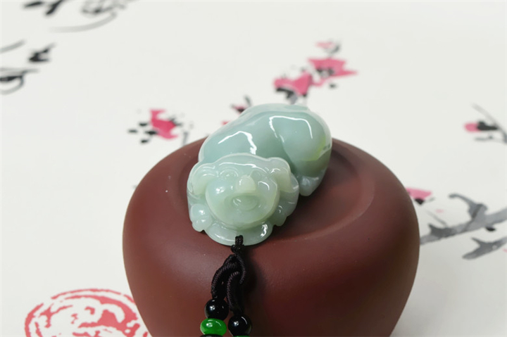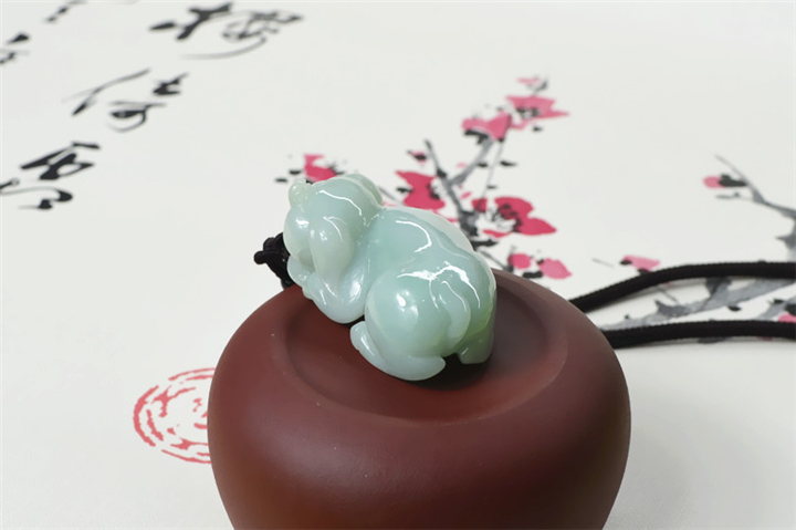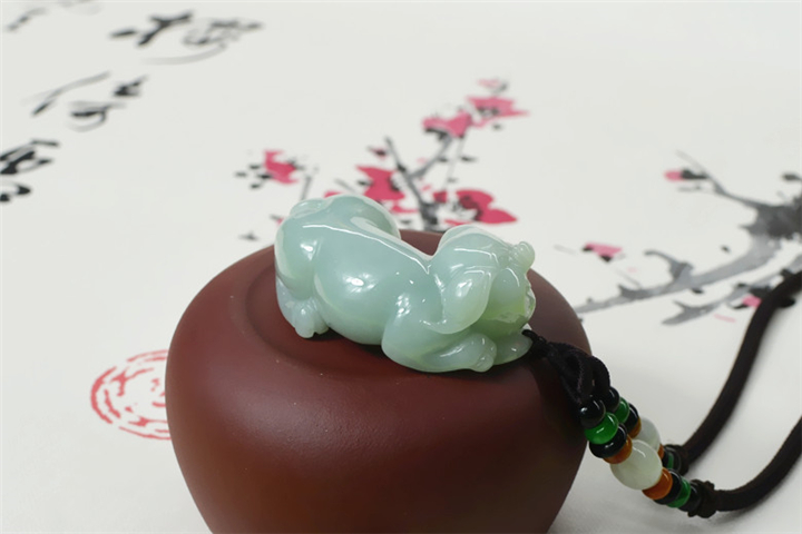精工雕刻翡翠天然糯种猪生肖猪吊坠缅甸a货翡翠立体猪挂坠特价