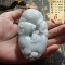 精雕天然翡翠洋洋得意如意手把件蝙蝠人参幸福美双面雕刻手玩件