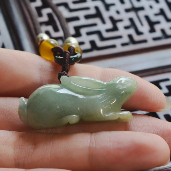 天然缅甸A货翡翠玉兔吊坠女款立体雕刻属相兔十二生肖项链挂件