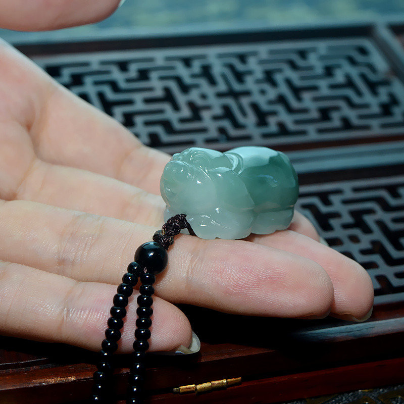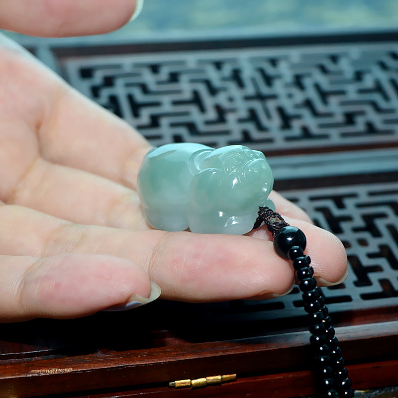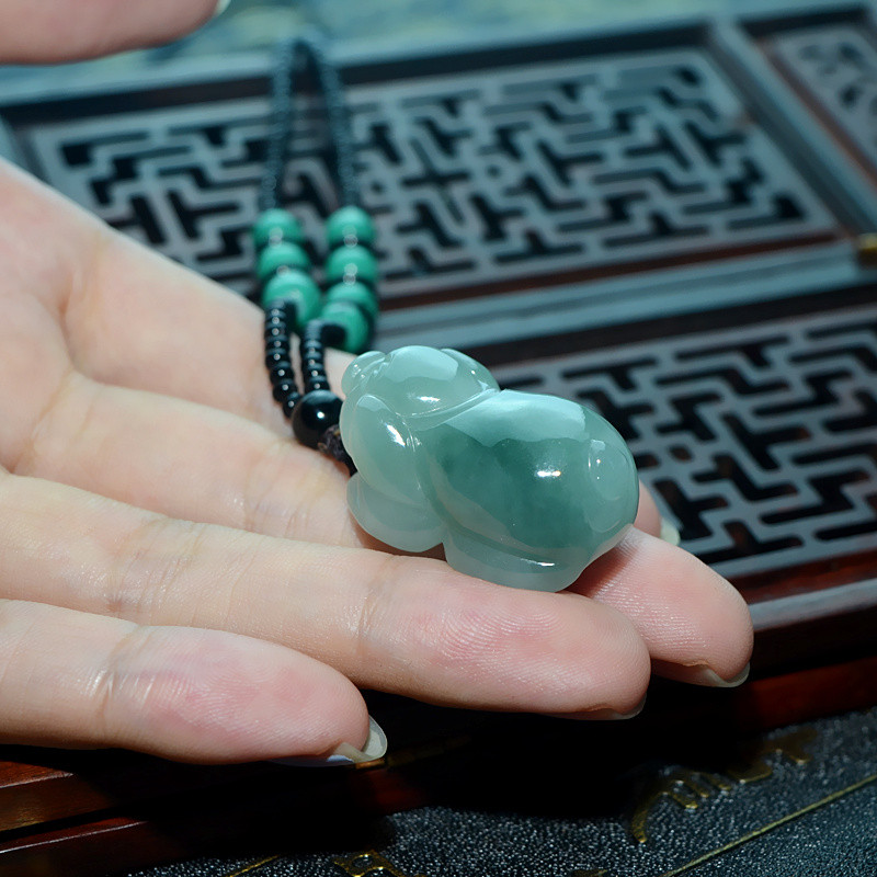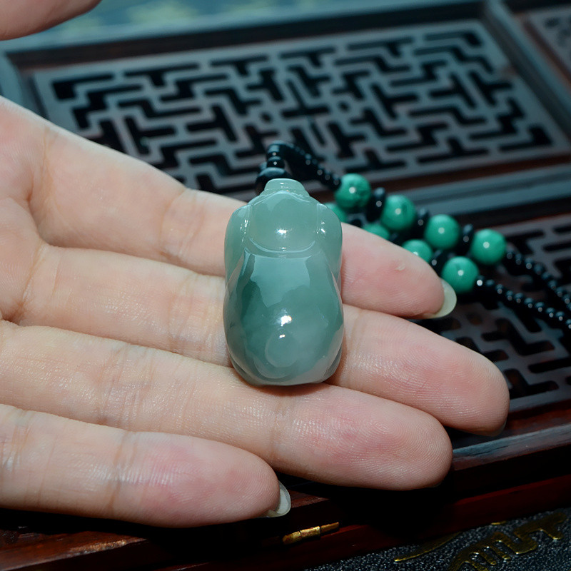 正品翡翠a货玉猪吊坠玉坠男女项链生肖立体猪挂件缅甸玉石挂坠