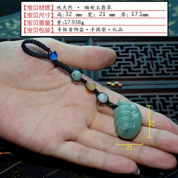 正品a货天然翡翠俏雕可爱点赞成功吊坠玉坠车钥匙挂件 带证书