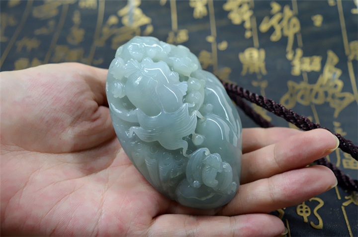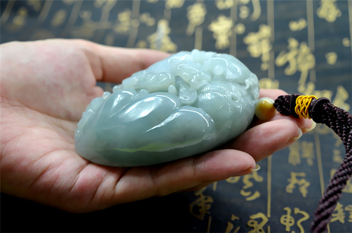 纯手工精雕天然翡翠金鱼手把件 金玉满堂美满如意双鱼富贵有余