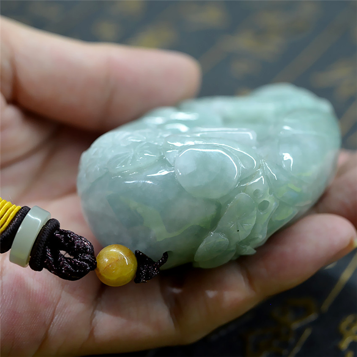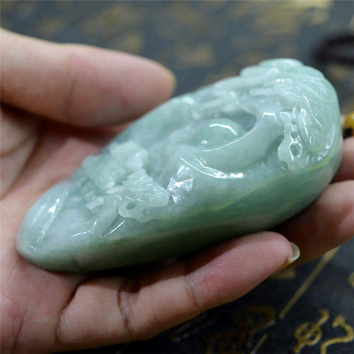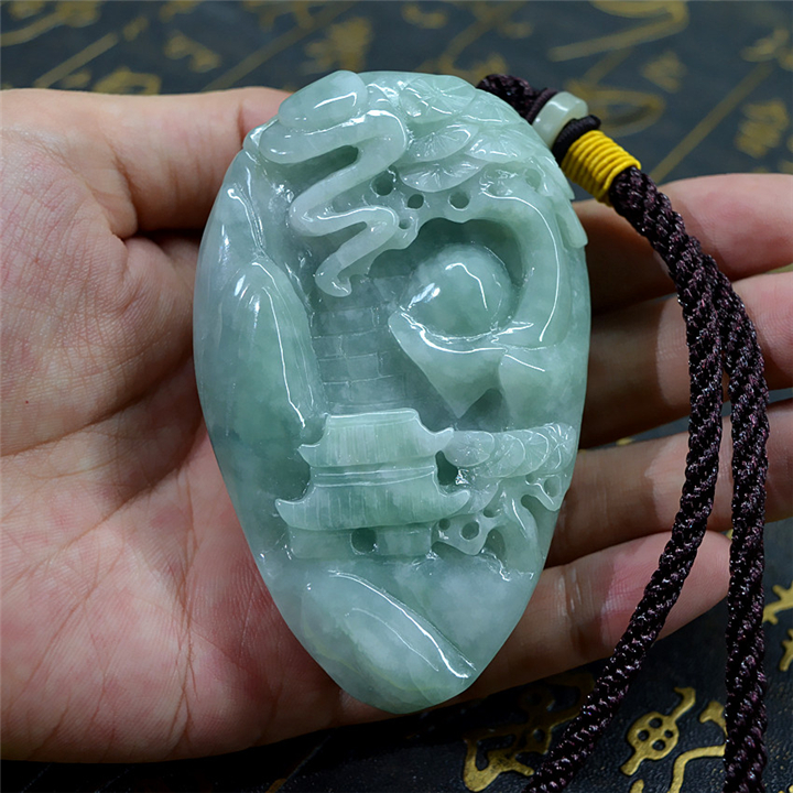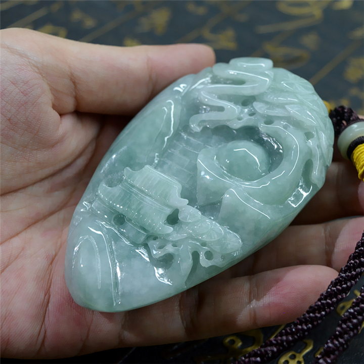 正品包邮天然A货翡翠锦绣前程山水手把件带证书 送领导礼物