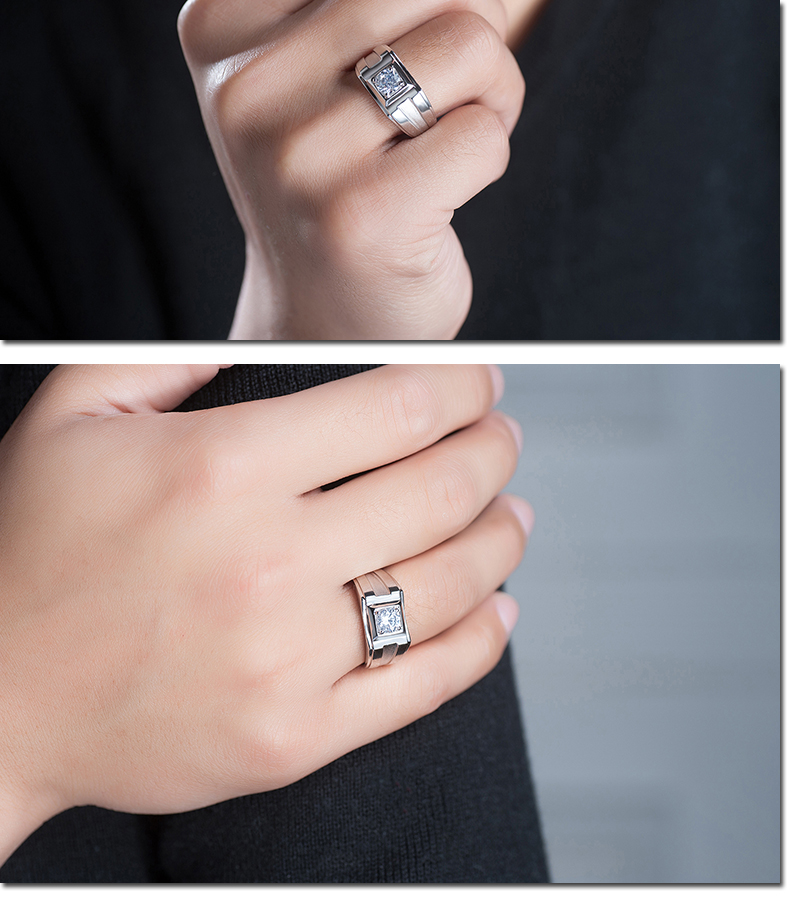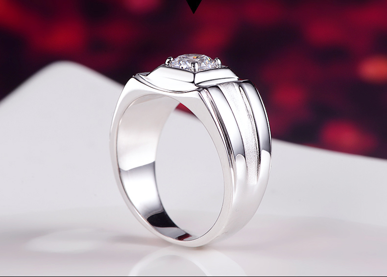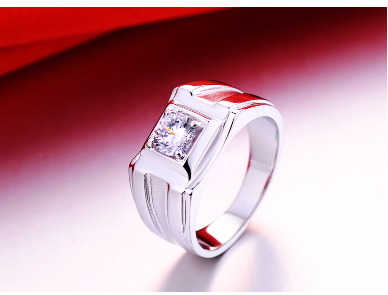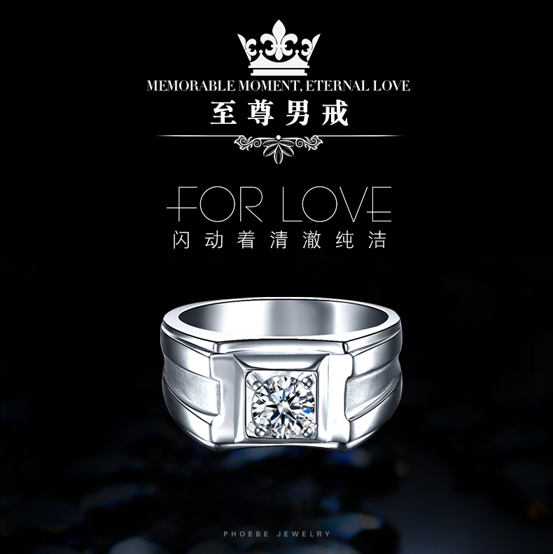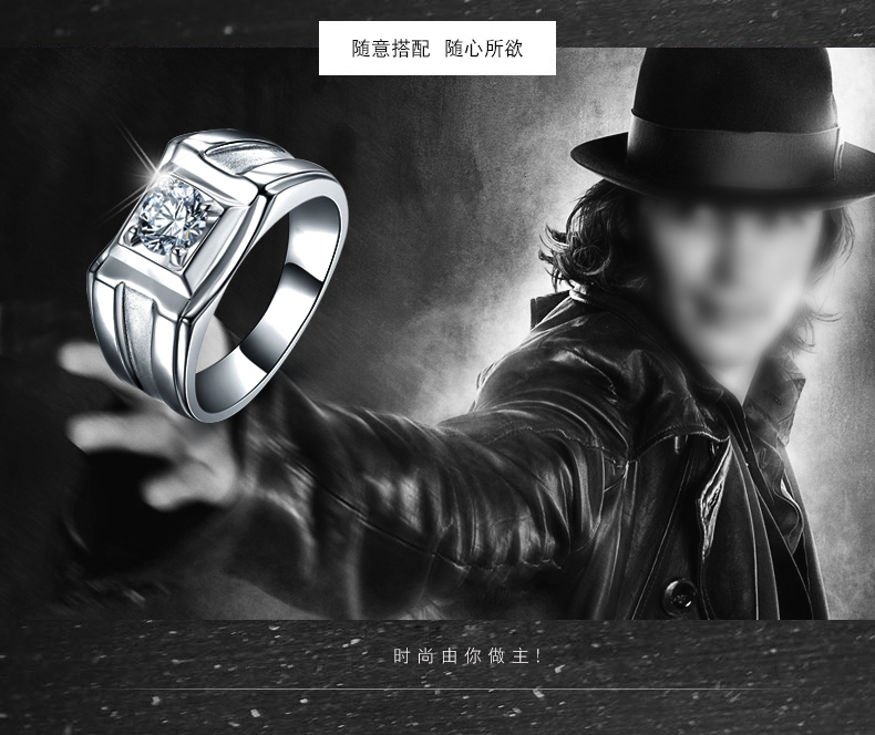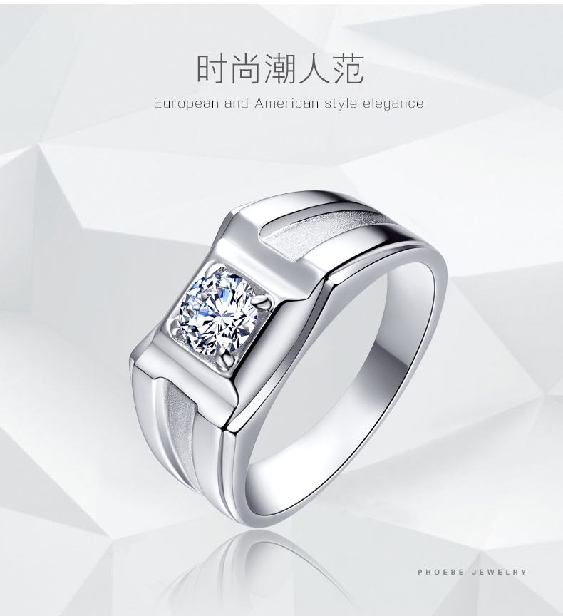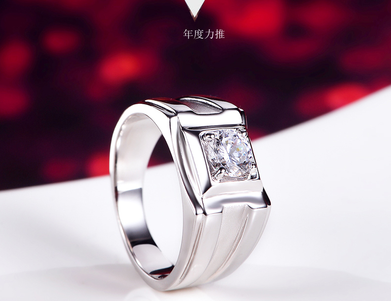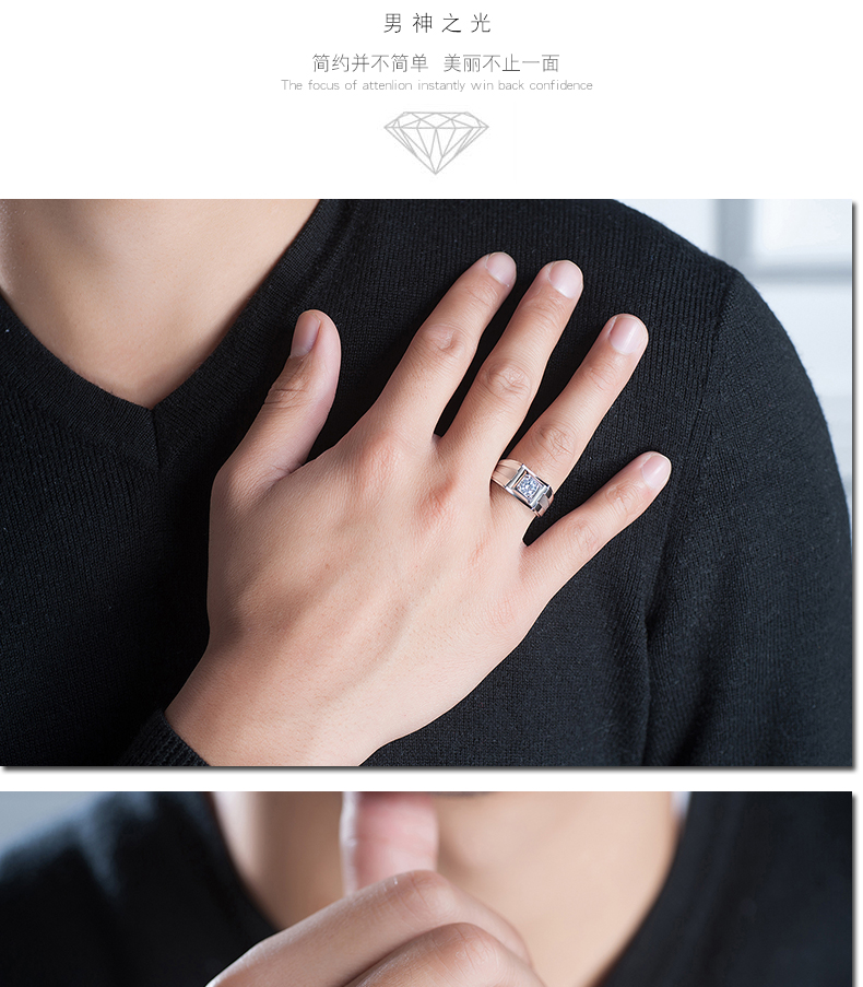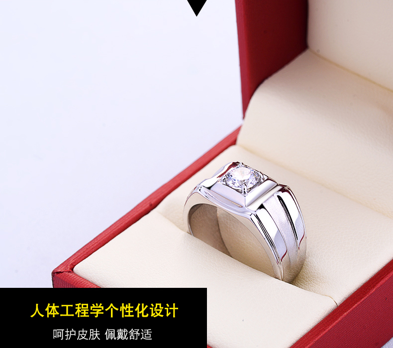 Pt950 纯银镀铂金仿真钻戒 个性独特磨砂款 男戒 婚戒 指环礼物