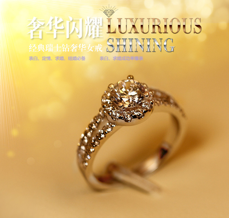 商品尺寸: | 戒指面宽约0.9cm 戒圈约0.3cm 重约3.5g 钻直径约0.7cm | ||
