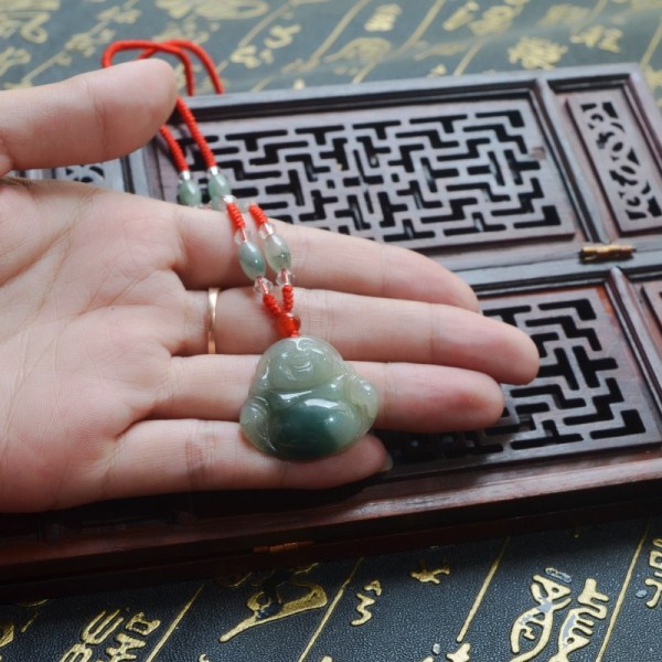 冰种飘花翡翠玉佛吊坠女款笑佛天然A货弥勒佛公项链缅甸玉石挂件