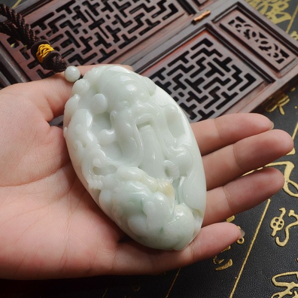 缅甸天然A货翡翠老种糯种精工雕财神爷招财瑞兽麒麟如意手把件