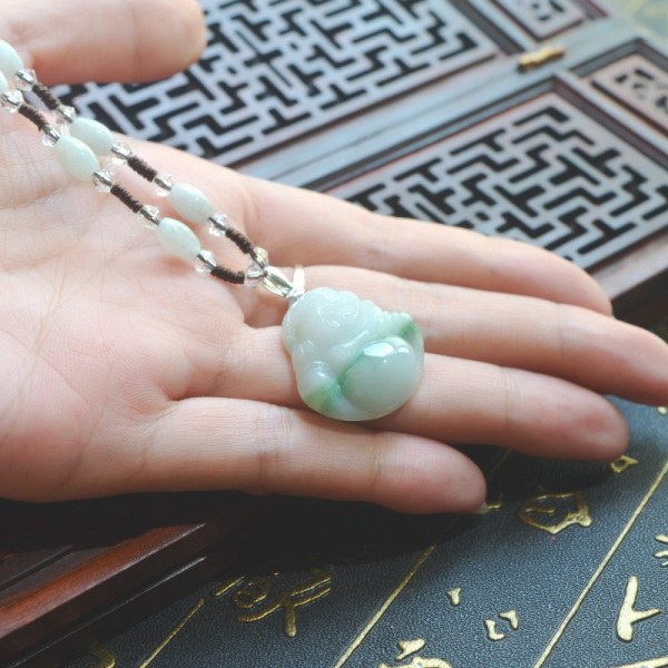 天然翡翠A货带绿佛吊坠佛公笑佛带链玉石弥勒佛挂件送女朋友礼物