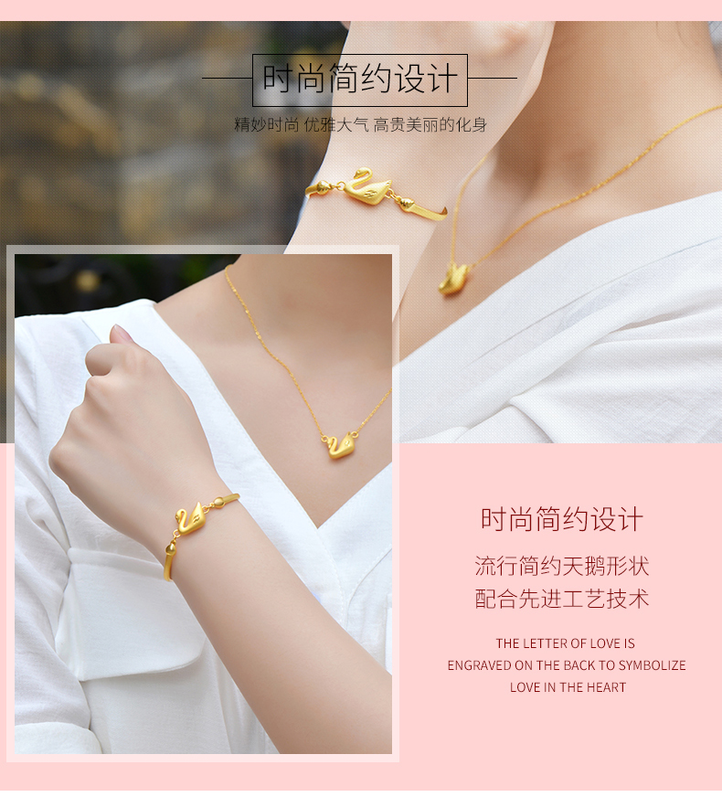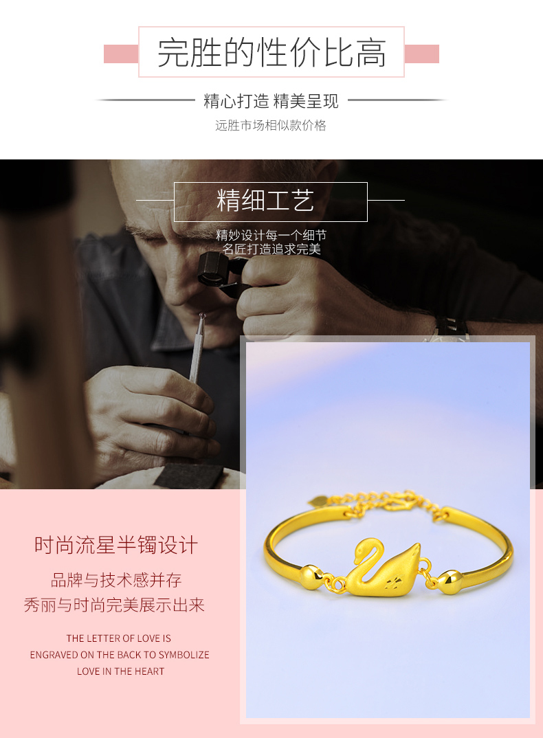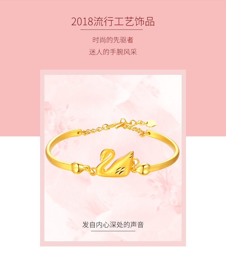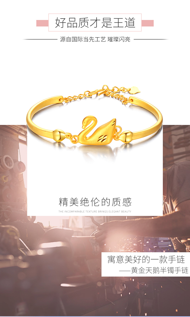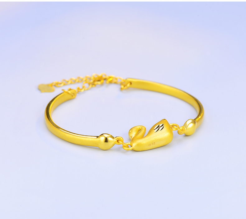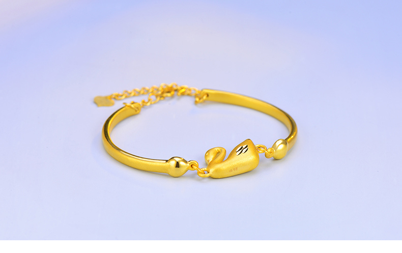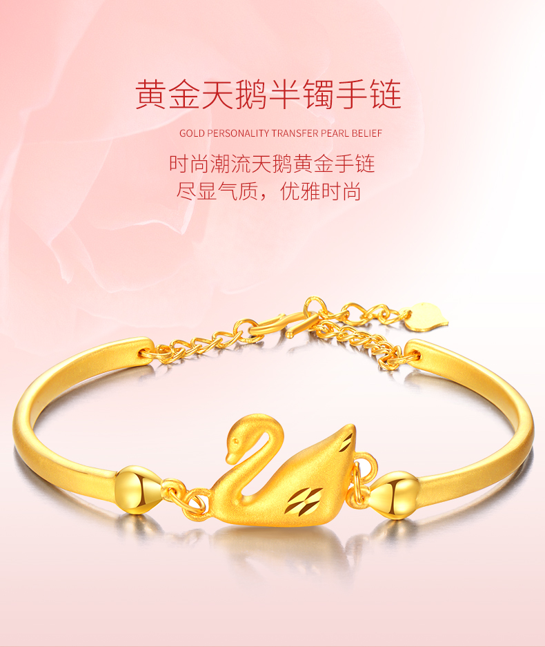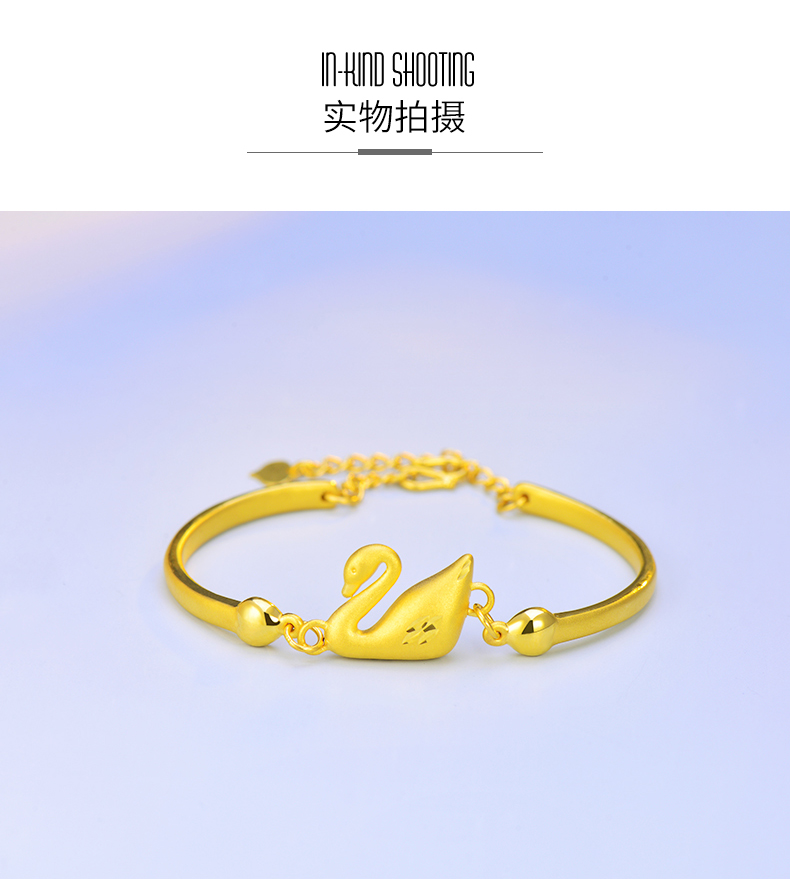 黄金手链女款天鹅手镯999足金纯金3D硬金半镯子转运珠金首饰正品