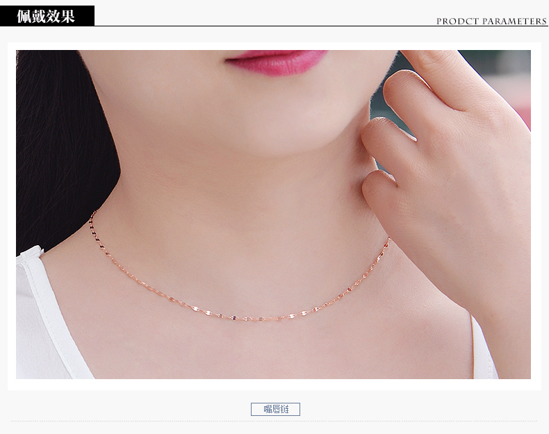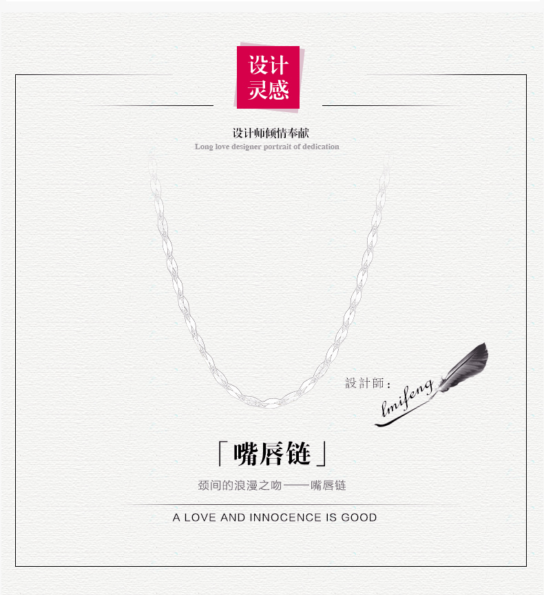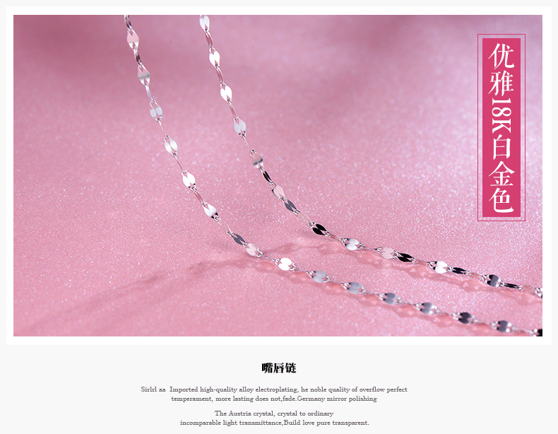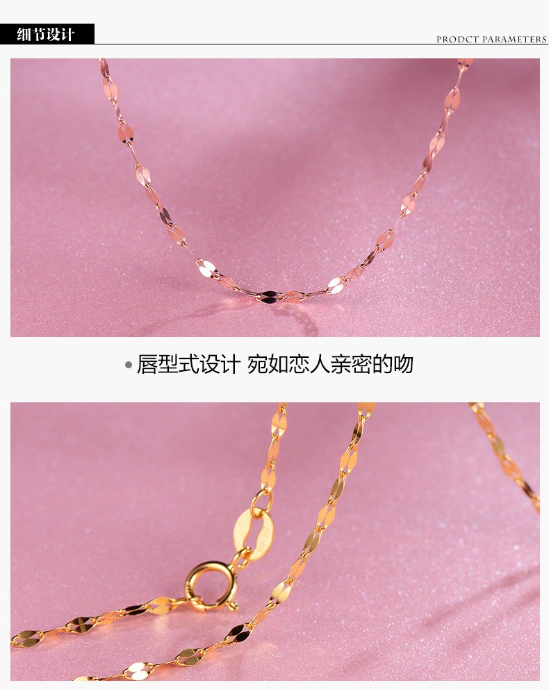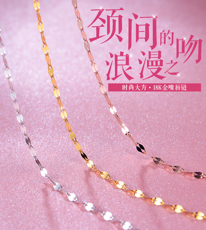 关于爱18K金项链黄金白金玫瑰金彩金项链嘴唇锁骨链女士挂项坠佳