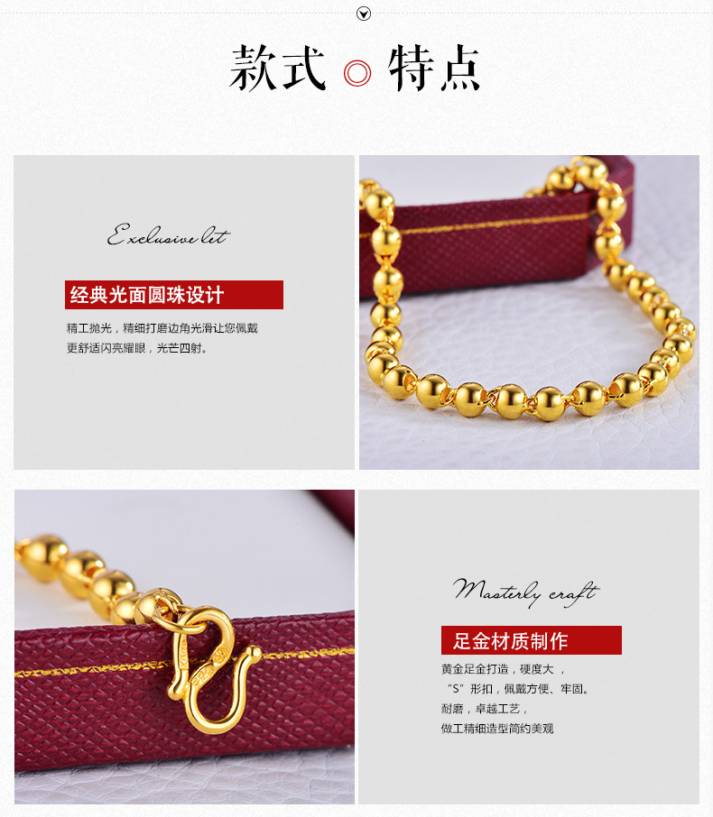 关于爱黄金足金 圆珠手链 转运珠 情人节礼物 免运费 |