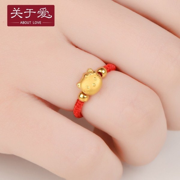 | 关于爱足金 红黑绳 俏猫咪戒指 转运珠本命年 黄金戒指 |