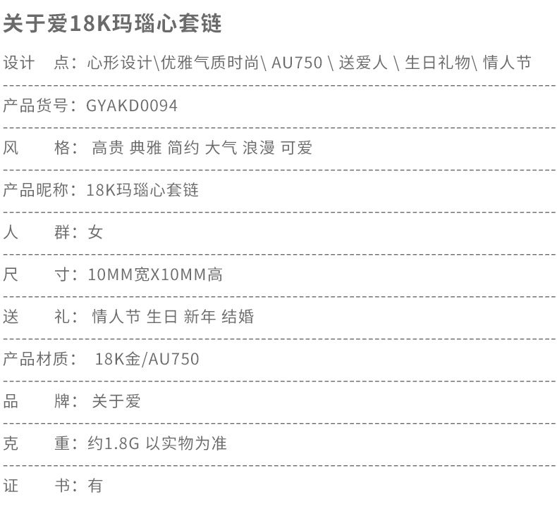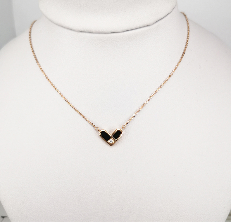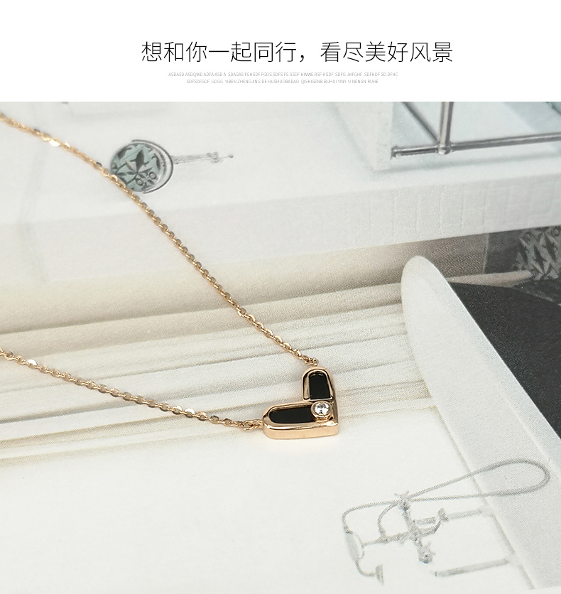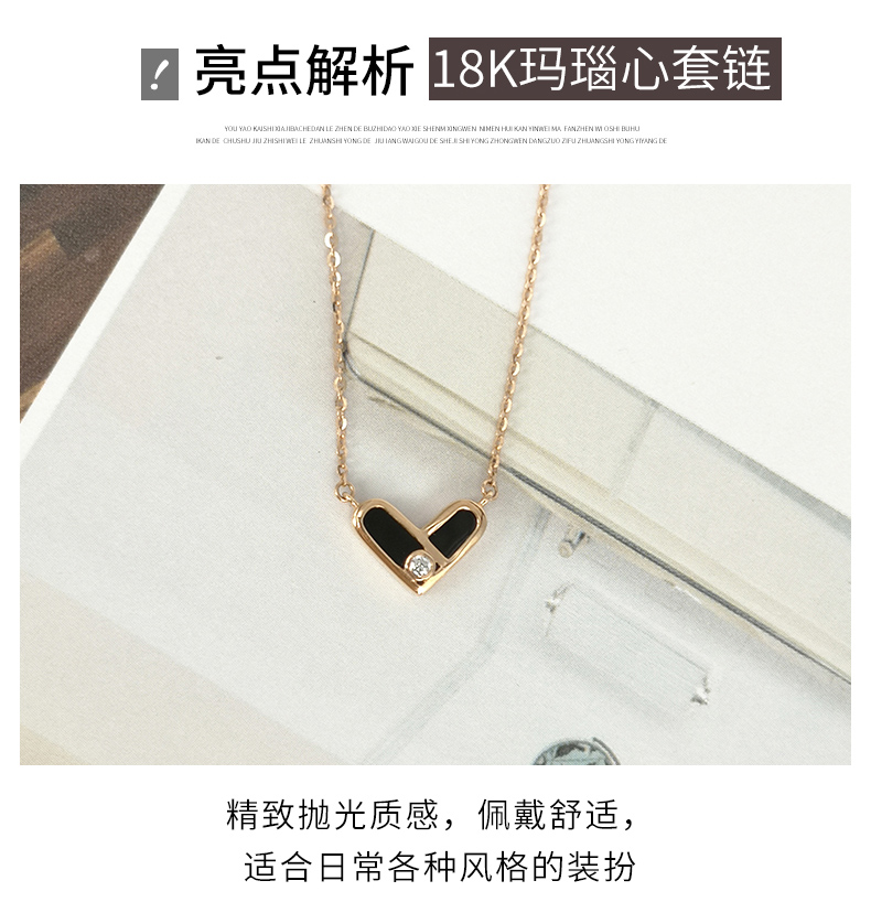 18K黄金项链女新款玛瑙爱心形au750套链K金细链颈链可调节锁骨链