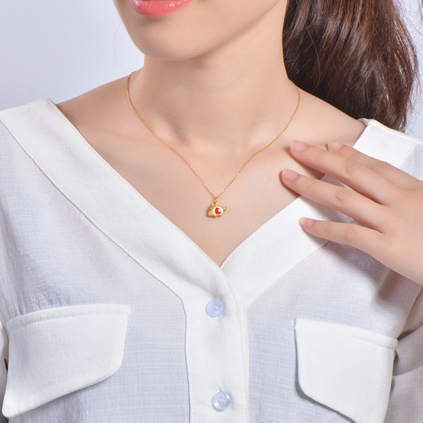 黄金项链女款硬足金爱心小猪吊坠生肖猪挂坠配18K金项链锁骨细链