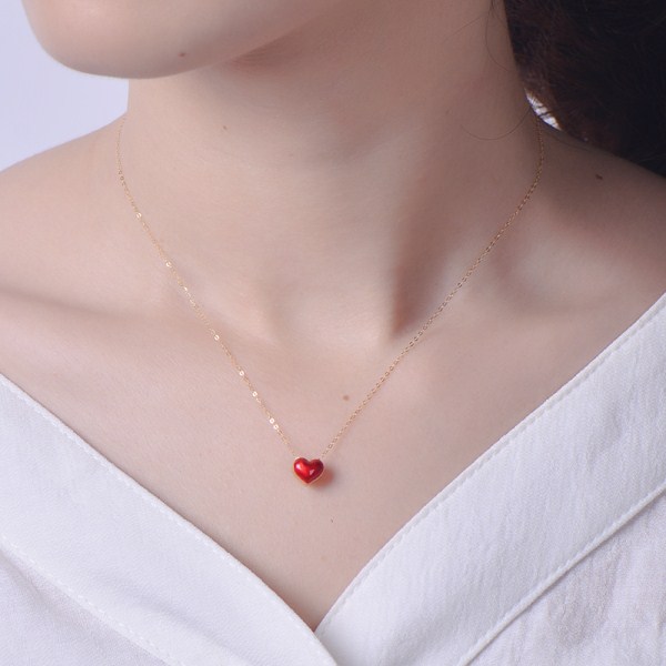 彩金项链女款999纯足金黄金红心形吊坠18K金锁骨套链细链首饰正品