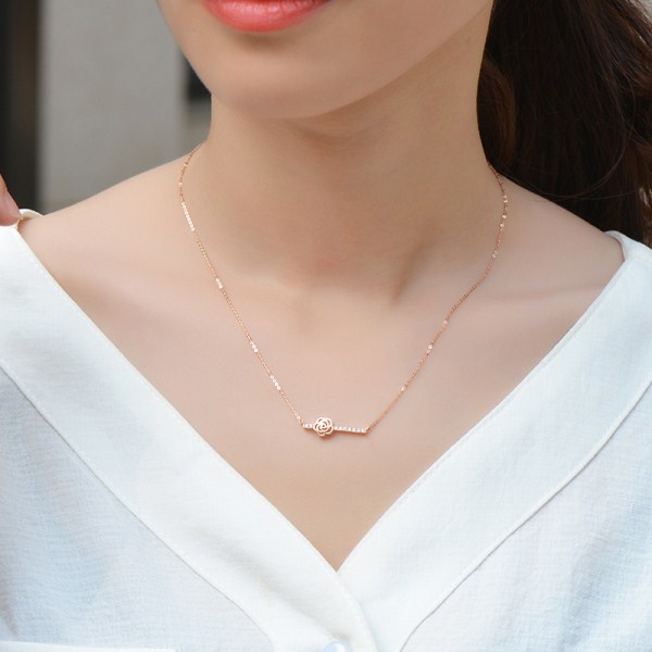 彩金项链女款正品18K玫瑰金笑脸玫瑰花吊坠au750套链O字锁骨链