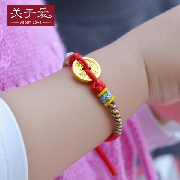 关于爱足金 红绳黄金铜钱红绳手链 | |