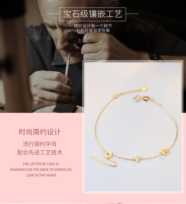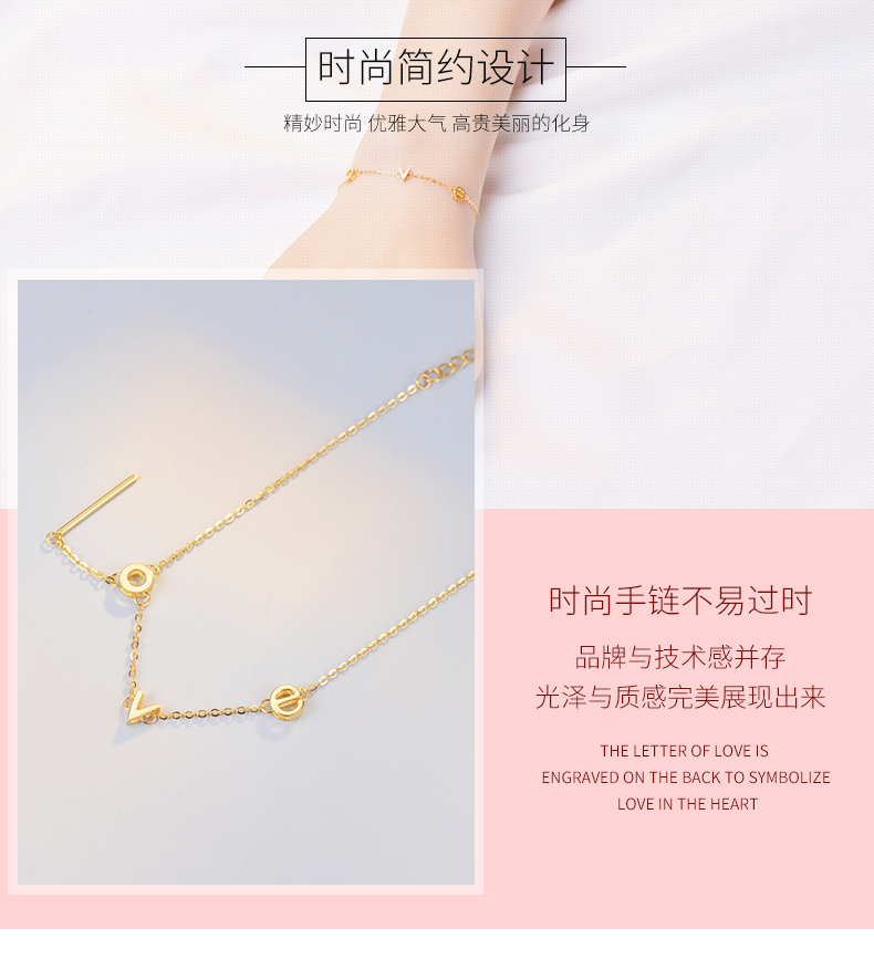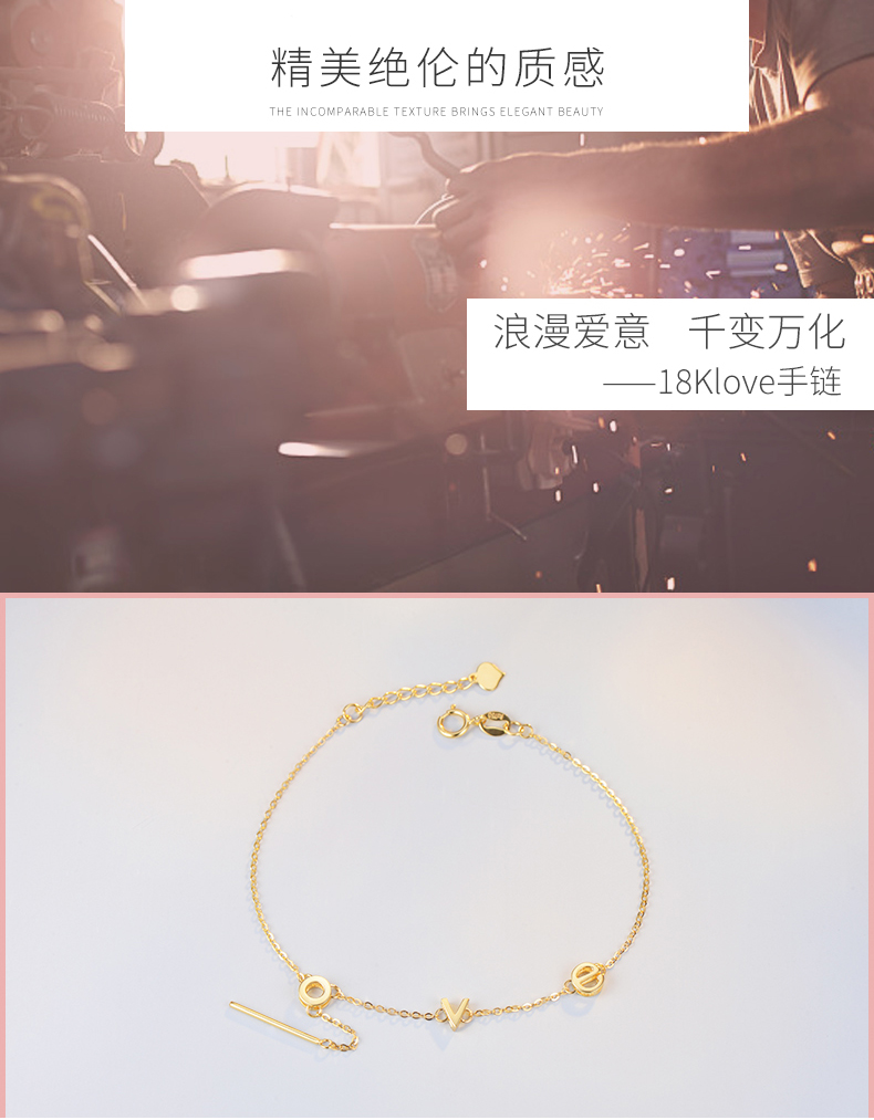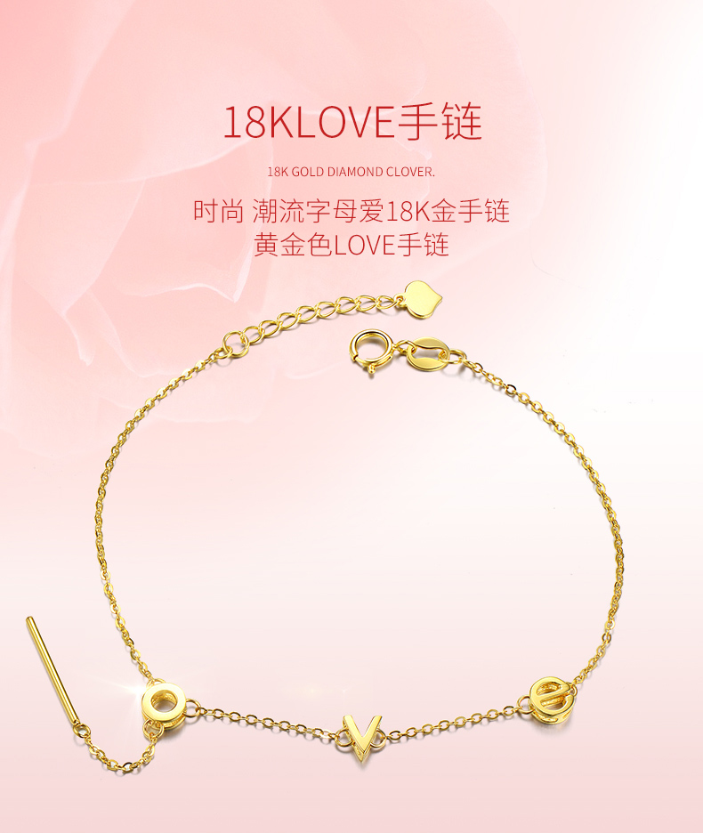 彩金手链女18k金手链AU750字母love手饰细款首饰金手镯送女友礼物