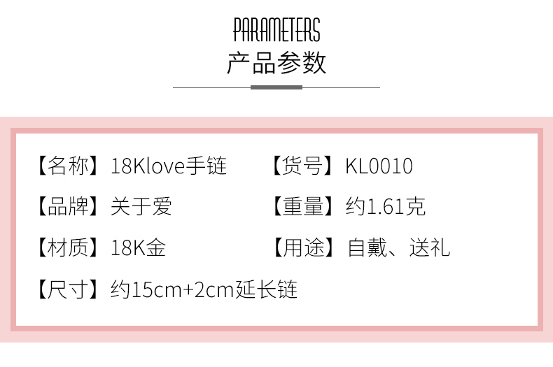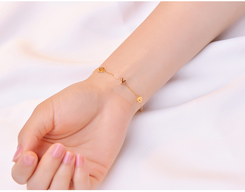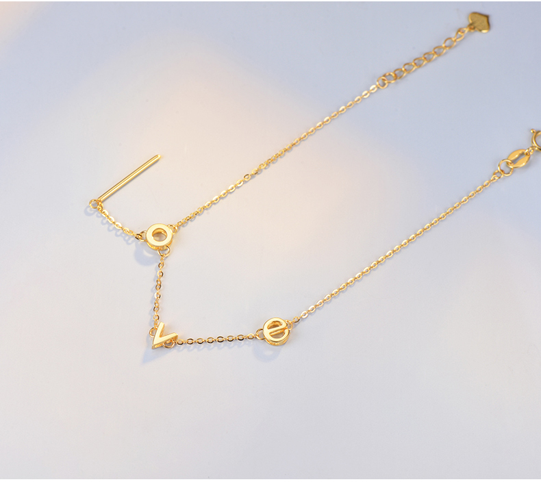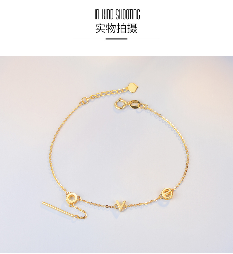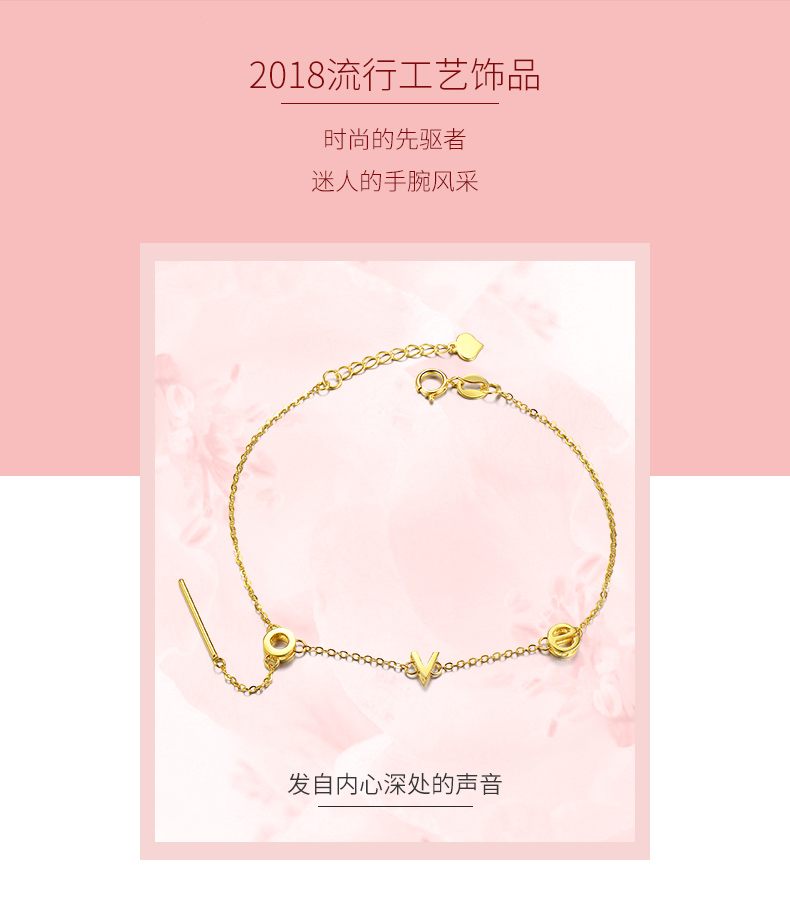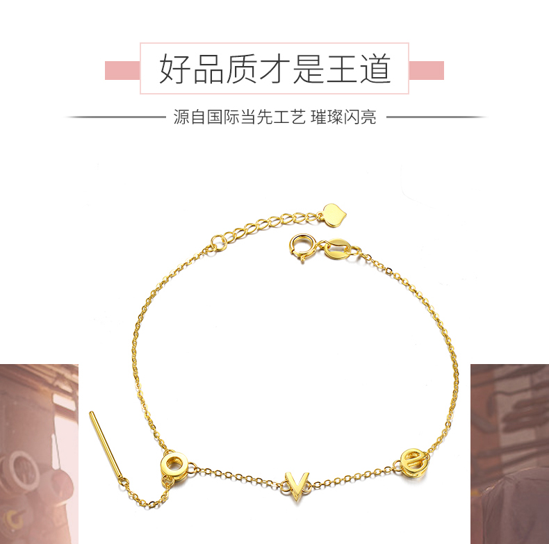 彩金手链女18k金手链AU750字母love手饰细款首饰金手镯送女友礼物