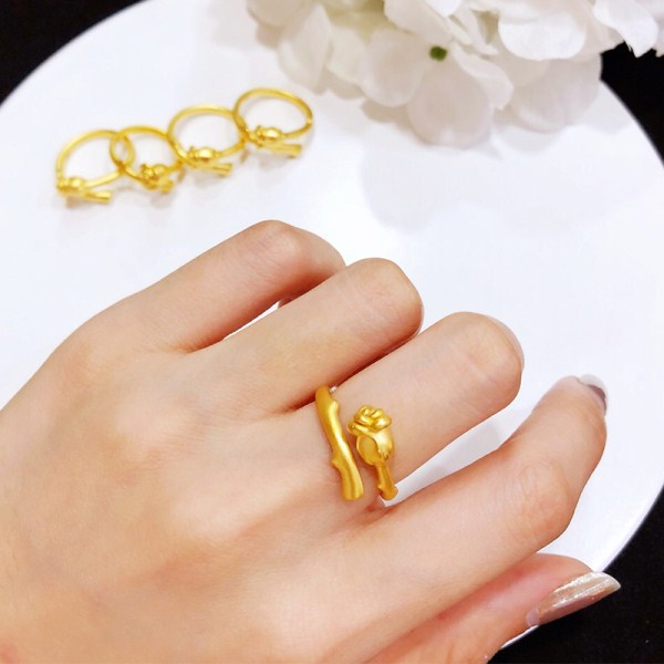 关于愛黄金戒指女新款999足金3D硬金玫瑰花转运珠戒指珠宝首饰