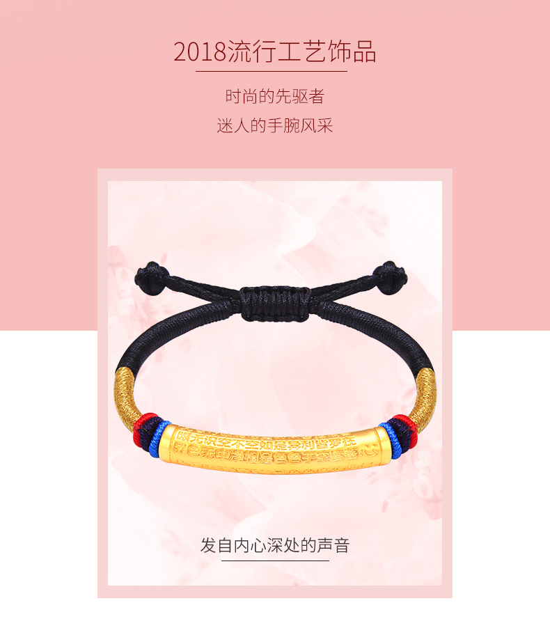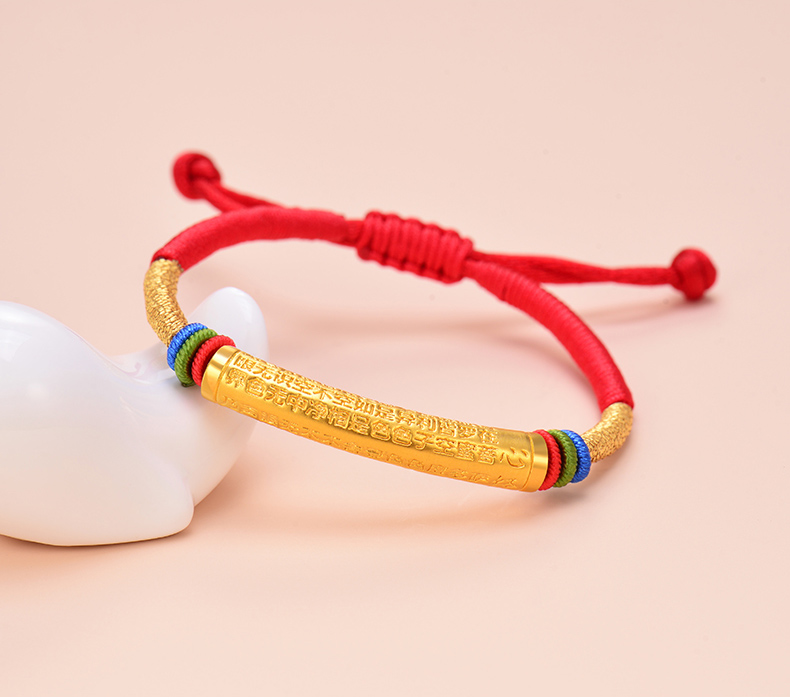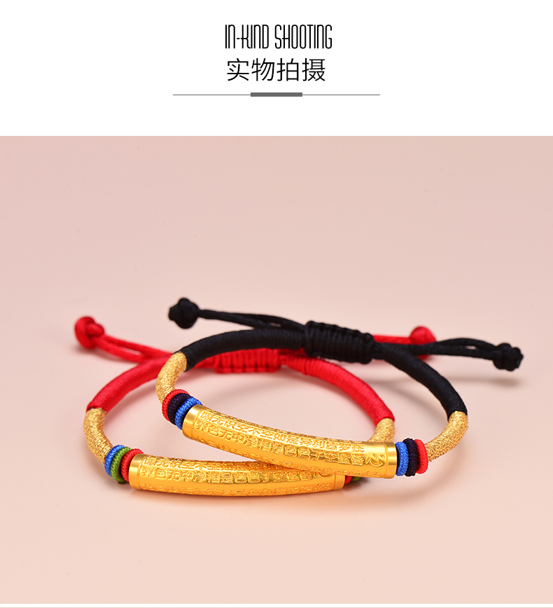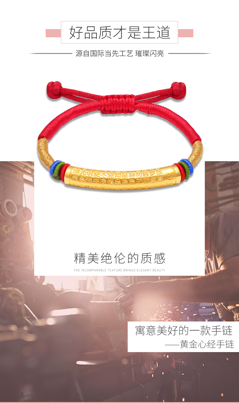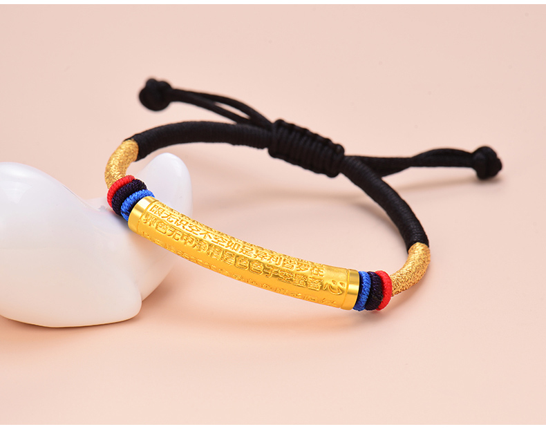 黄金手链男女999足金转运珠心经情侣款手链手工编织定制节日礼物