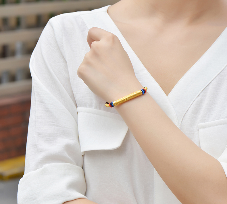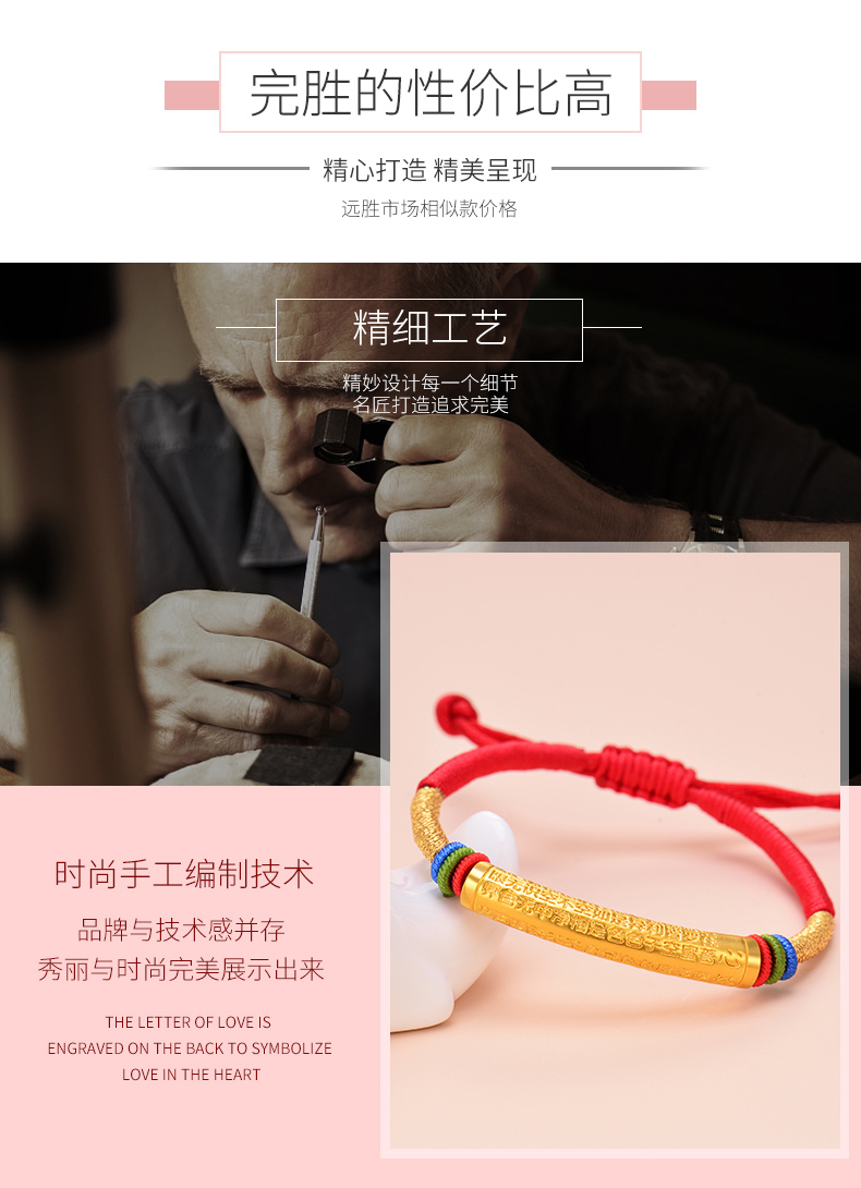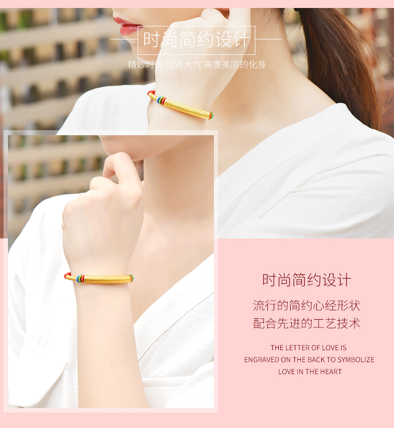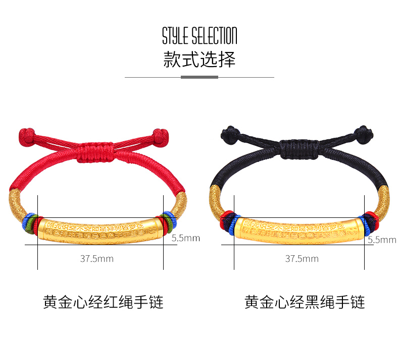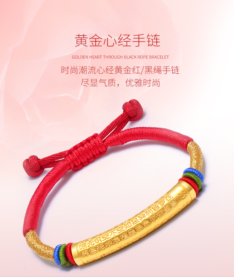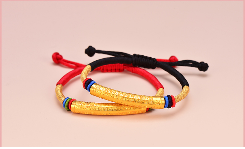 黄金手链男女999足金转运珠心经情侣款手链手工编织定制节日礼物