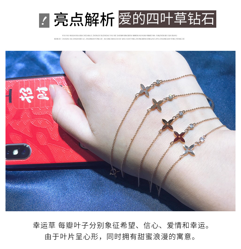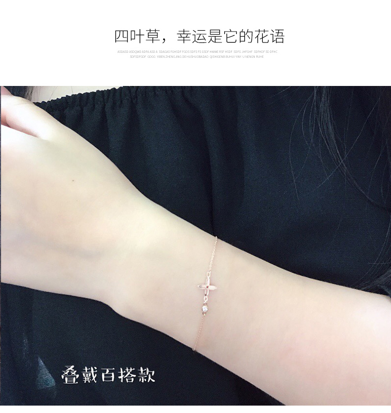 18K金手链女款K金手镯手环玫瑰金四叶草钻石手链细链au750手饰