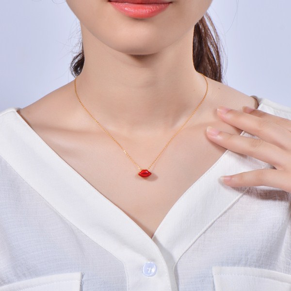 黄金项链女款3D硬足金999小红唇吊坠红色烤漆新款18K金O字链首饰