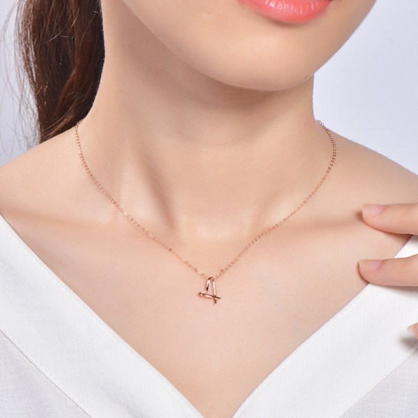彩金项链女18K金镶嵌钻石心形吊坠套链白金彩金细链新款锁骨链