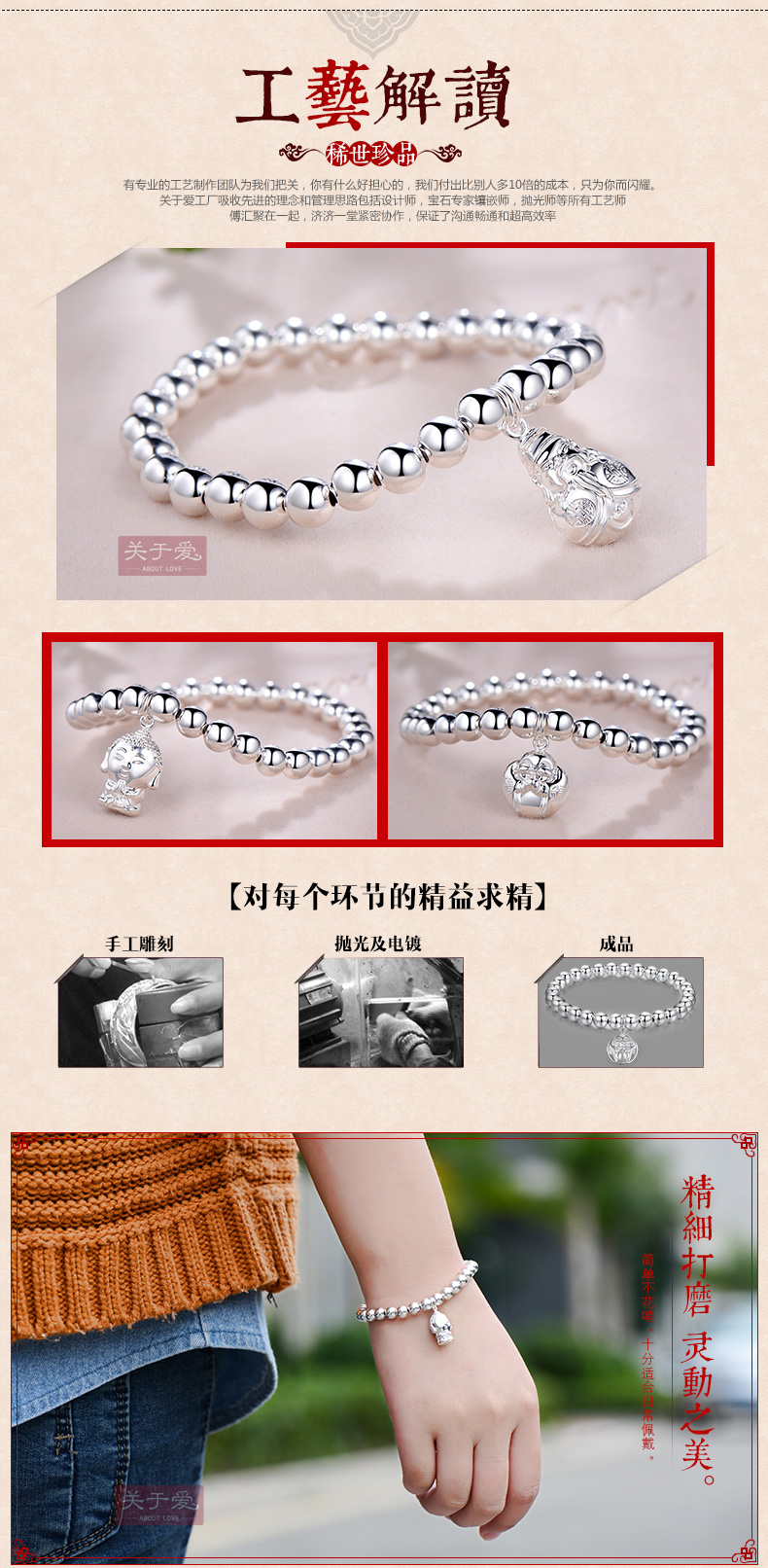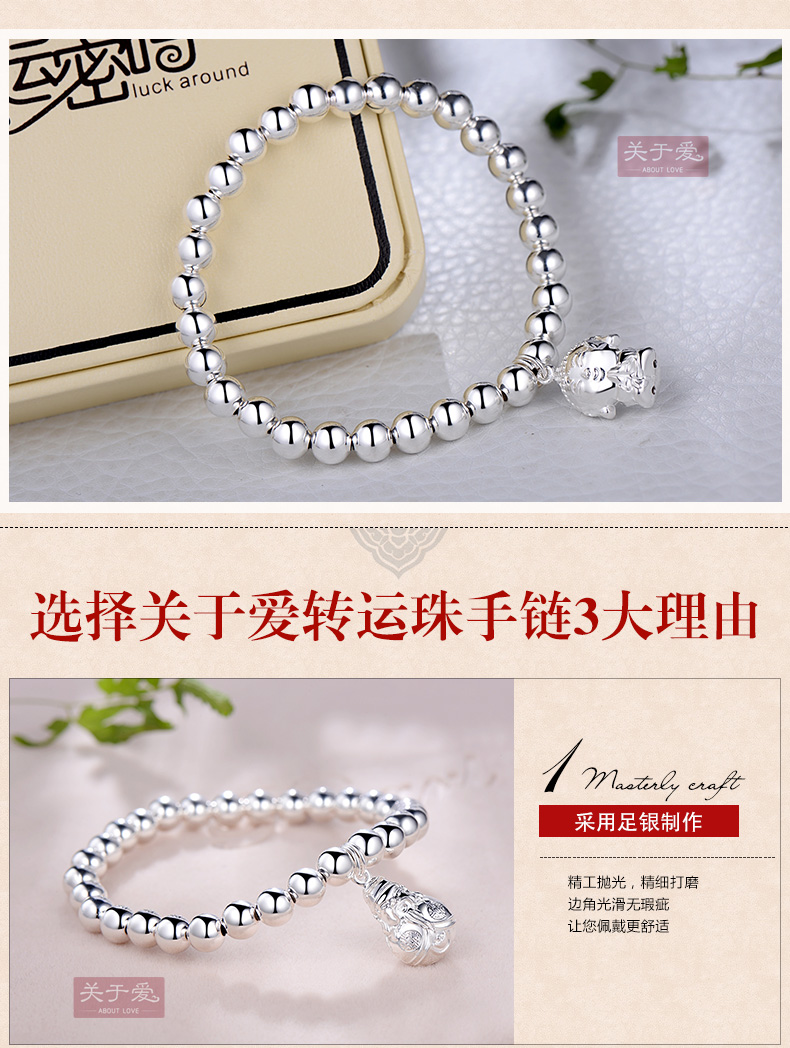 关于爱 足银 转运珠 时来运转 个性手链 |