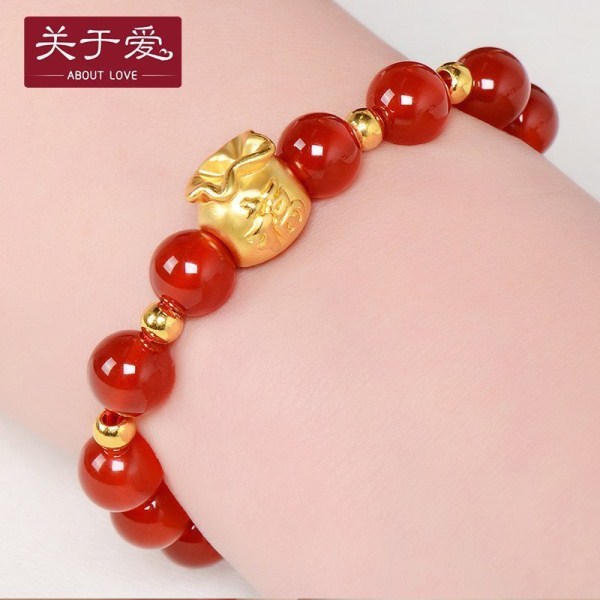 设计点:福袋足金手链 高贵典雅 足金 红玛瑙 送爱人 新年礼物 情人 |