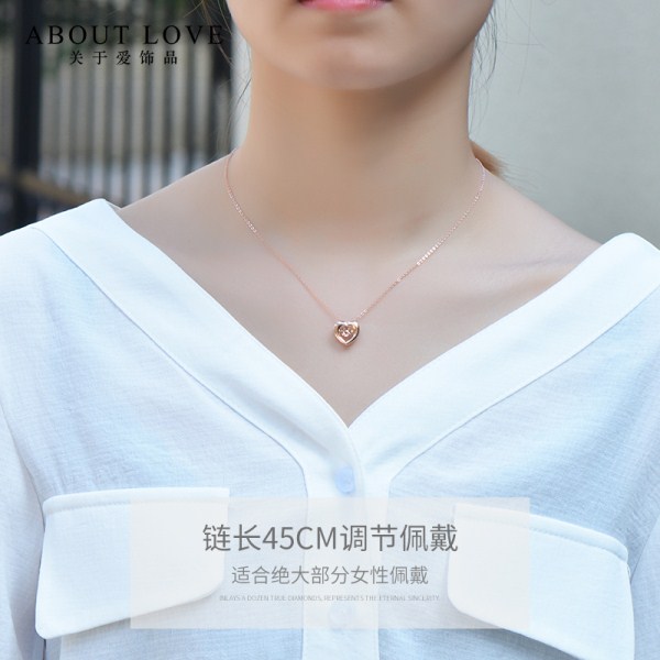 18K金项链女款彩金灵动心形吊坠au750套链玫瑰金锁骨链细送女朋友