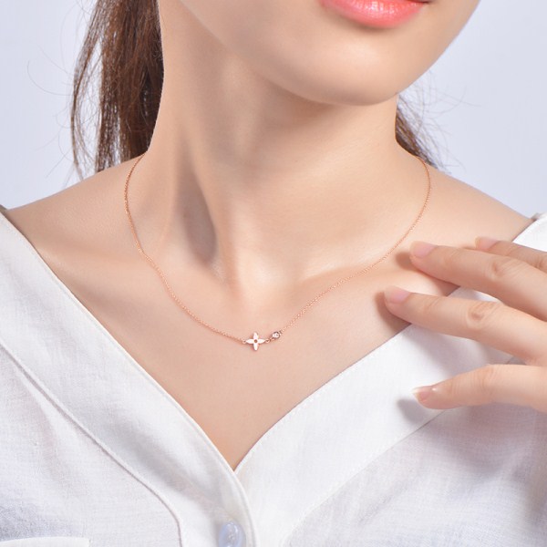 18K金项链玫瑰金小四叶草钻石套链K金吊坠彩金项链女款锁骨链细链