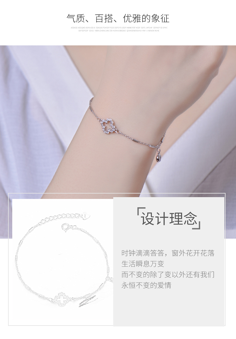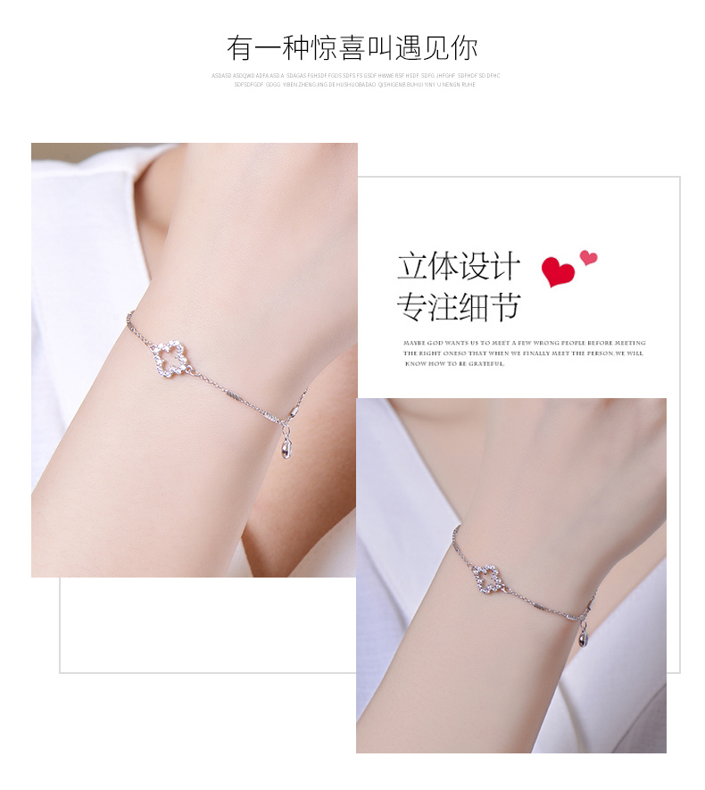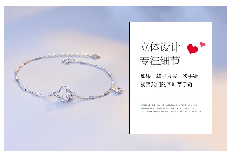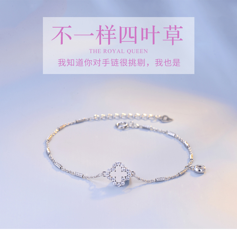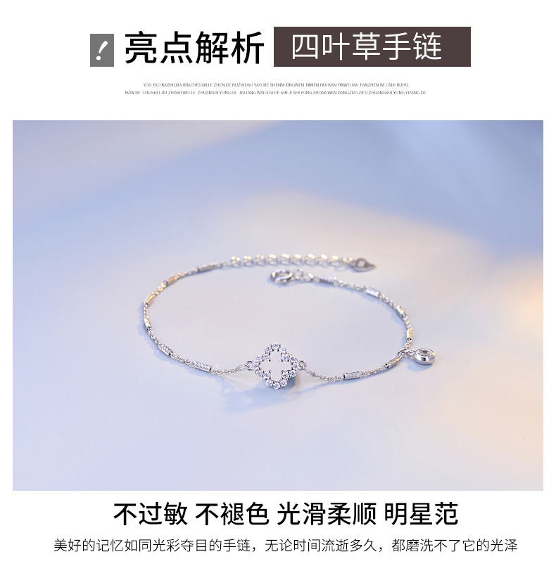 四叶草手链女925银幸运草韩版简约学生森系闺蜜小饰品送女朋友