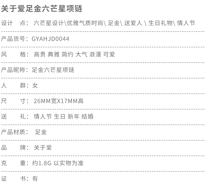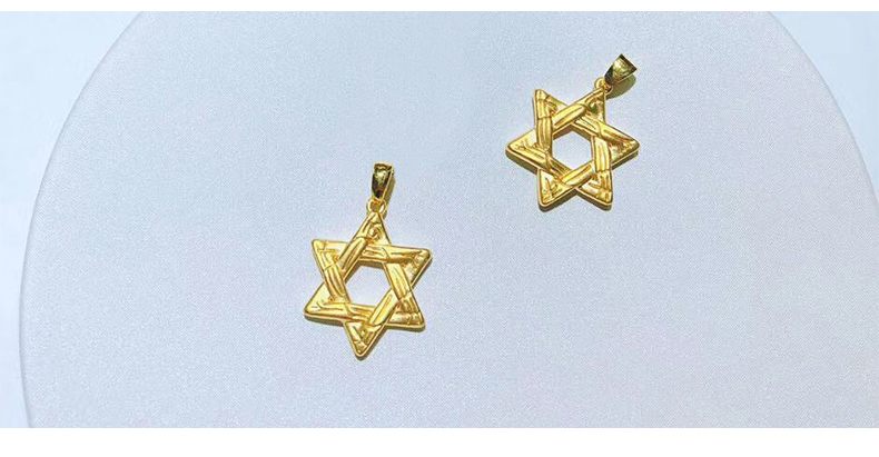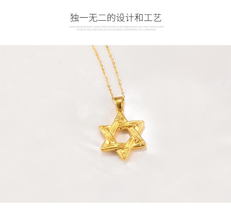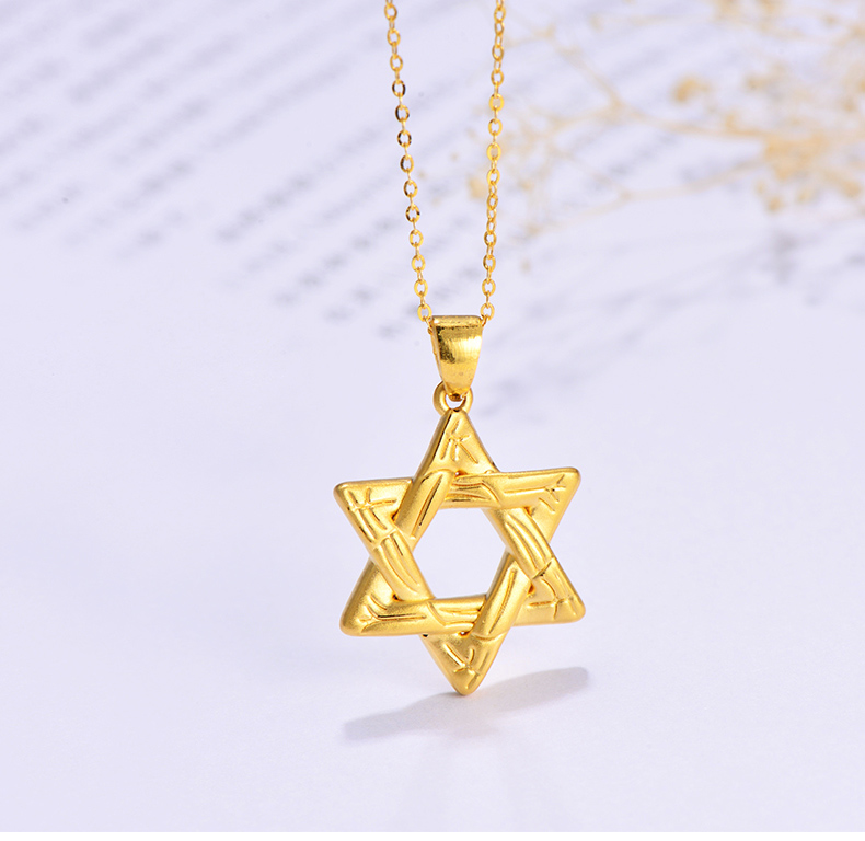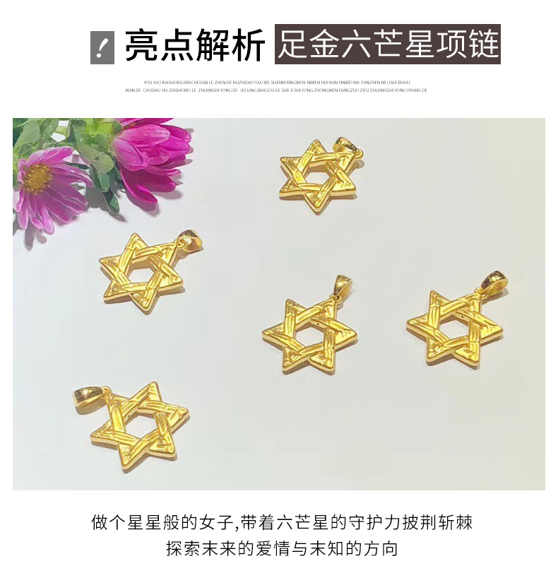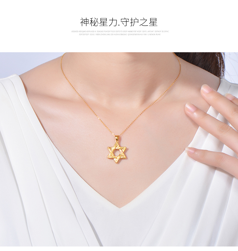 黄金项链女款足金吊坠六芒星六角星吊坠新款K金颈链锁骨链首饰品