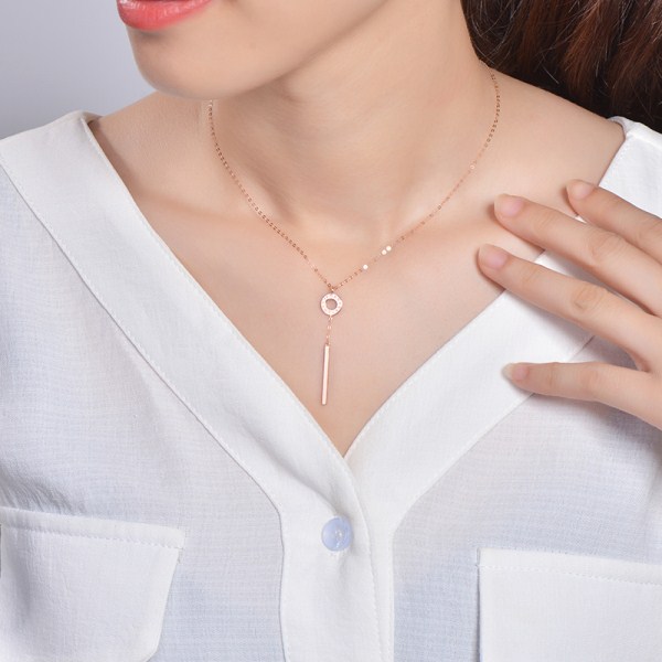 18KLOVE性感项链彩金项链女简约韩版时尚圆圈流苏小棒锁骨颈链