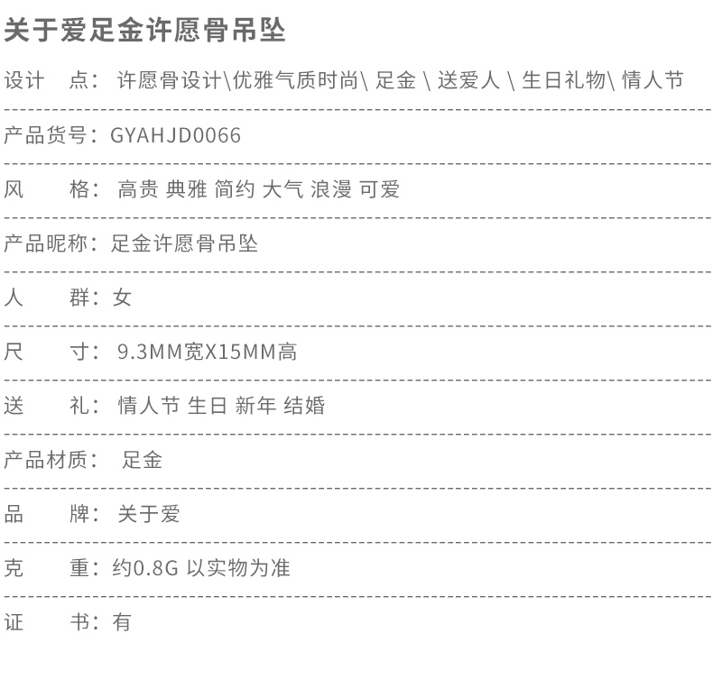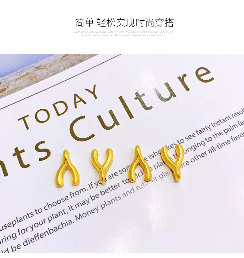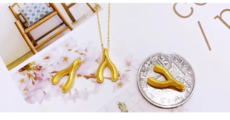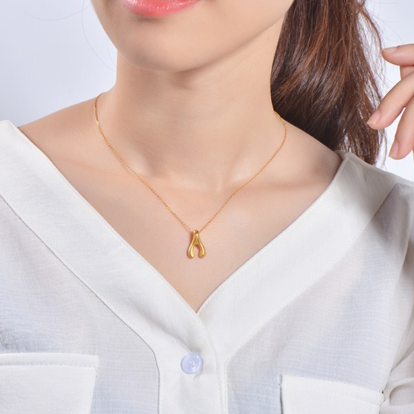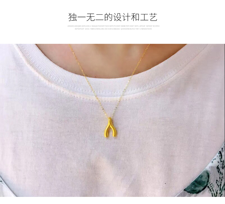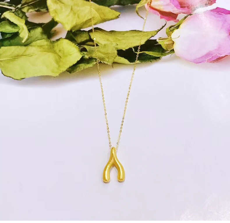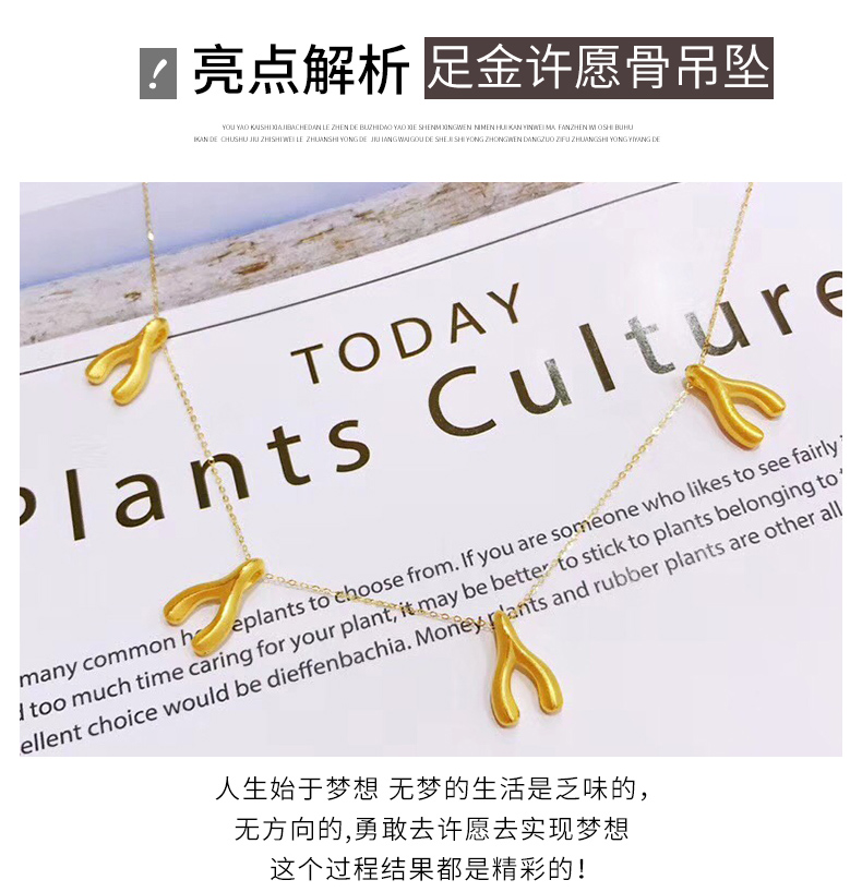 黄金项链女款足金许愿骨吊坠Y形项链女锁骨链子日韩新款颈饰品