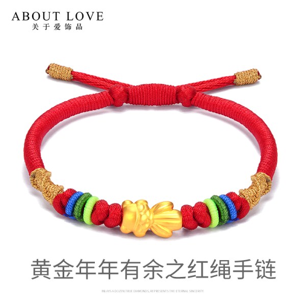 黄金手链女999足金转运珠年年有鱼有余手工编织绳硬金礼物送女友