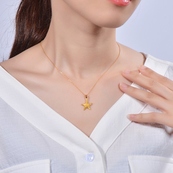 足金吊坠黄金钉砂海星吊坠女黄金项链套链锁骨链颈坠饰品