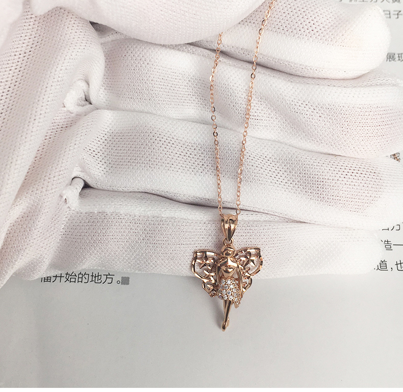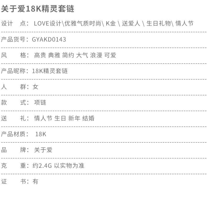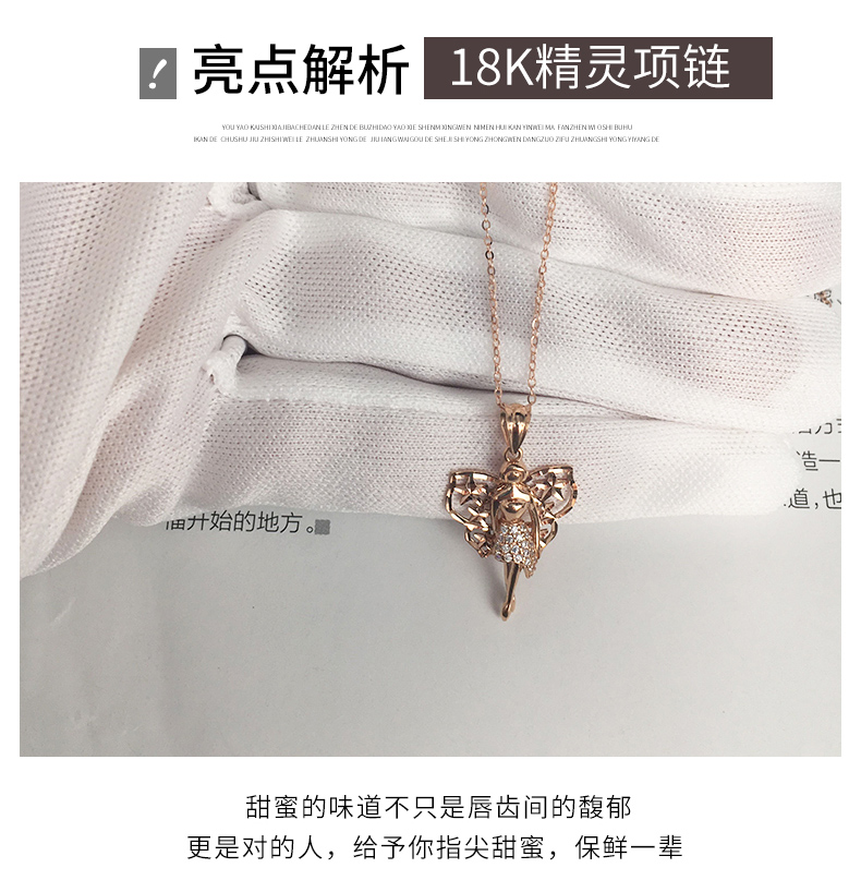 彩金项链女18k玫瑰金新款镂空精灵吊坠au750项链套链锁骨细链正品