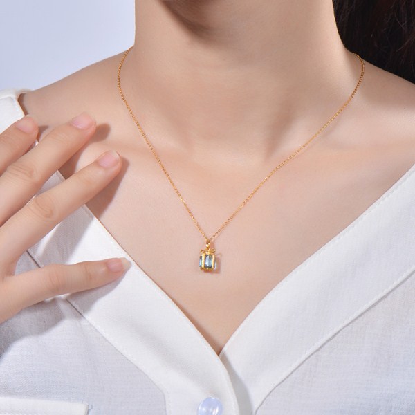 黄金项链女999足金吊坠蓝色礼盒镶嵌人工合成水晶吊坠锁骨链细链
