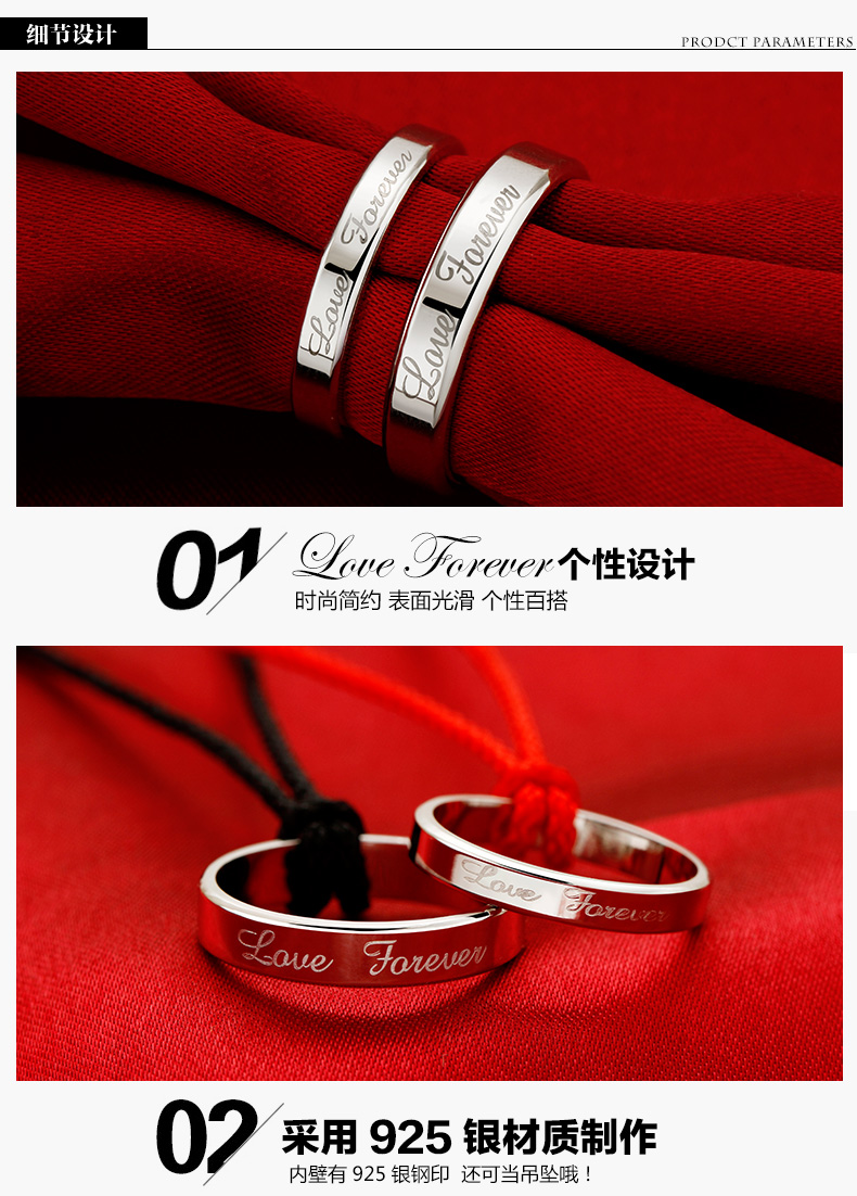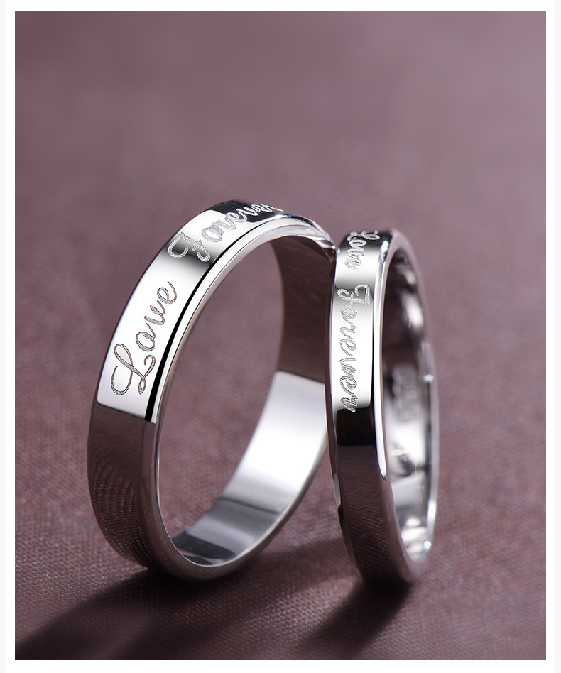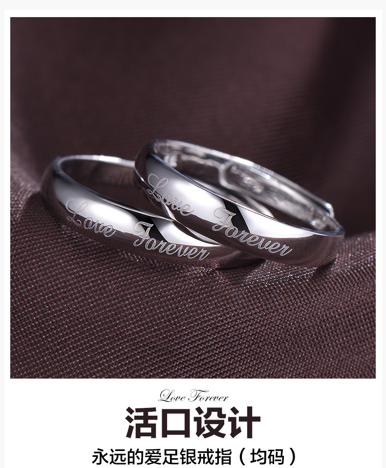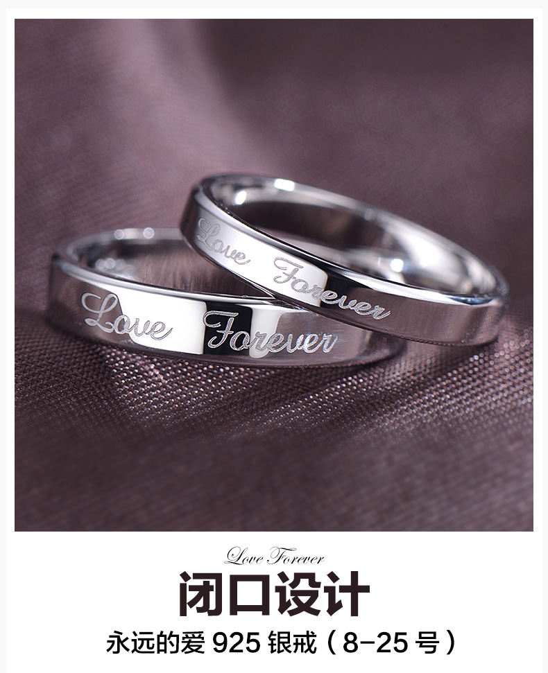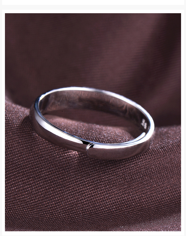 S925银戒指女士男款光面刻字情侣戒指对戒日韩潮人简约指环饰品