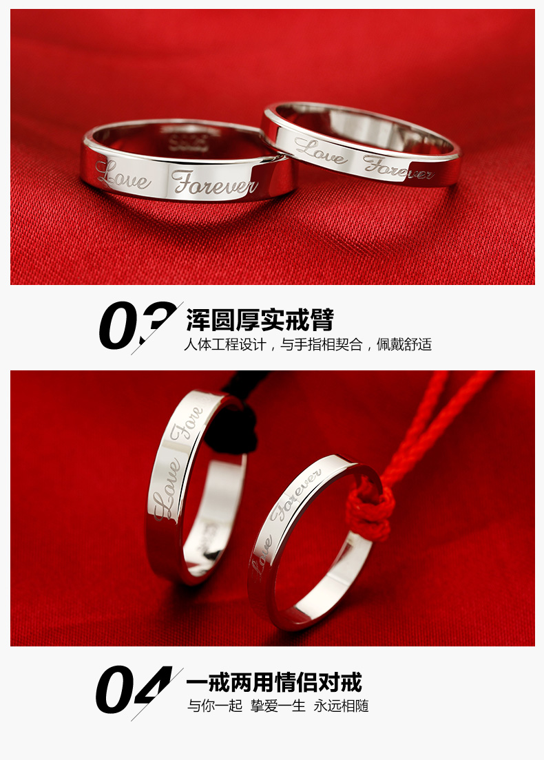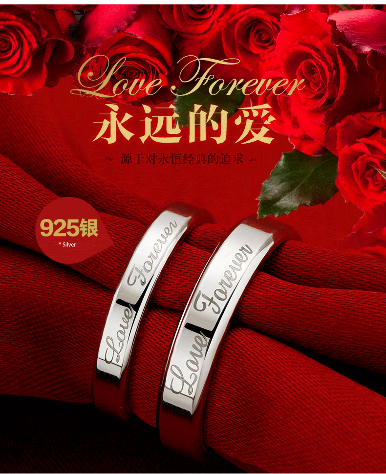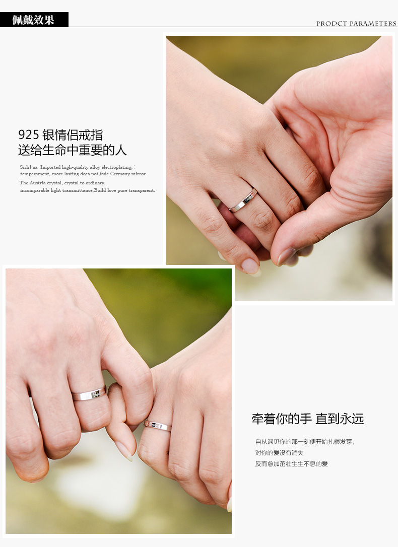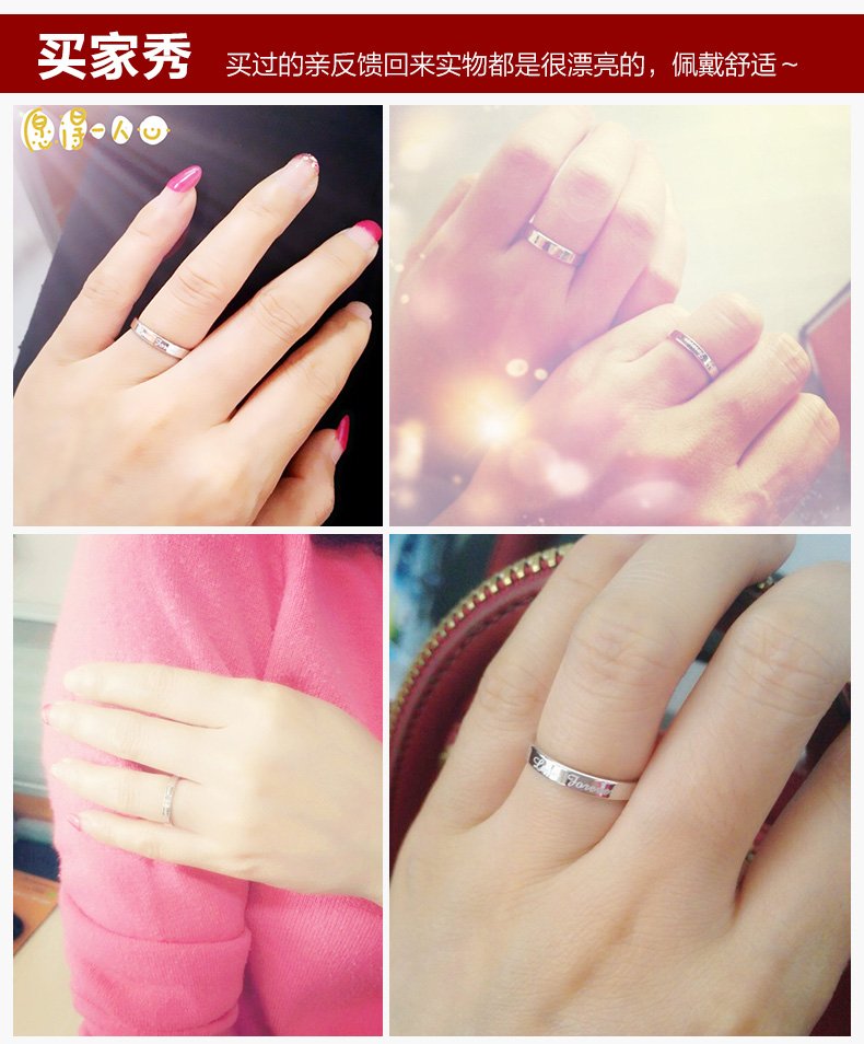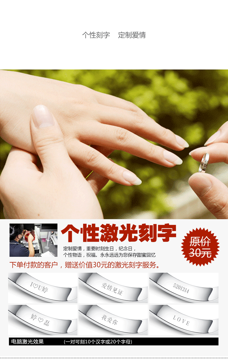 S925银戒指女士男款光面刻字情侣戒指对戒日韩潮人简约指环饰品