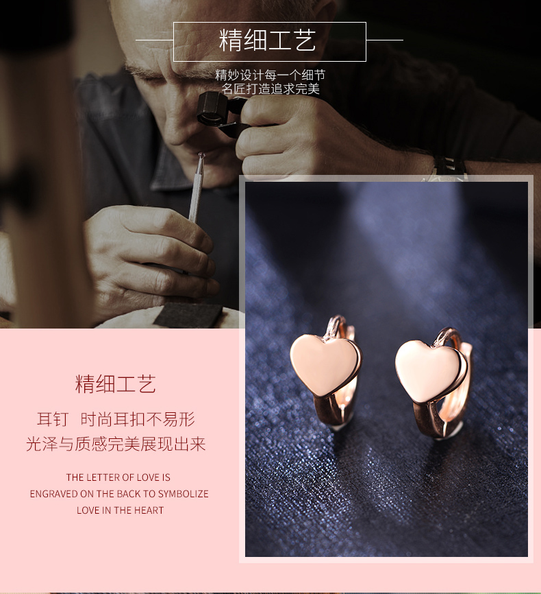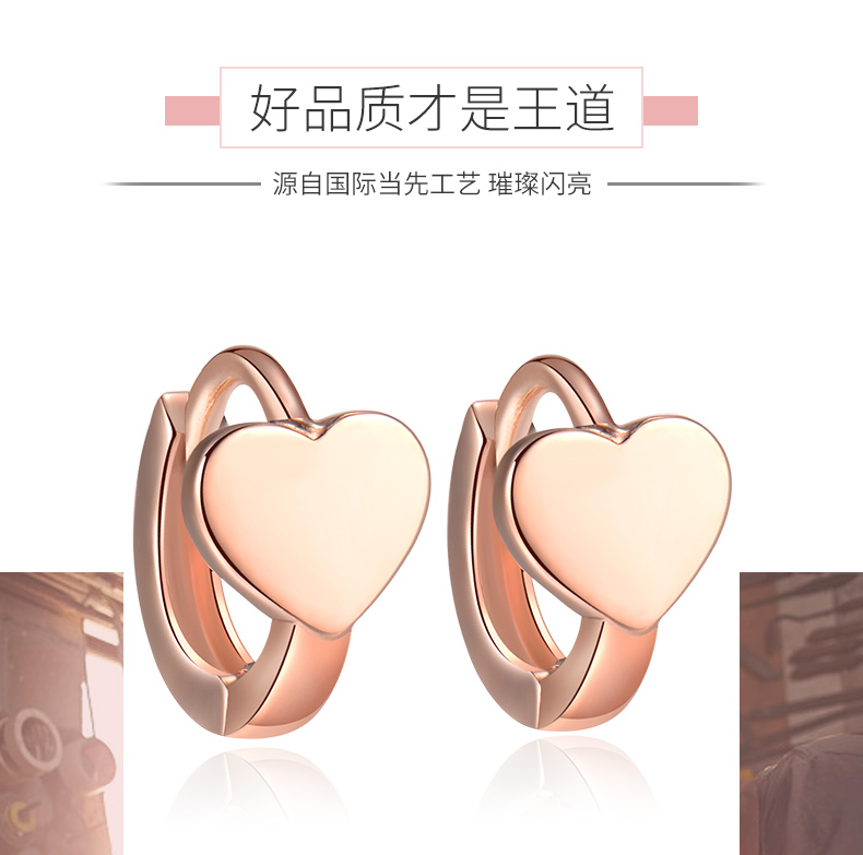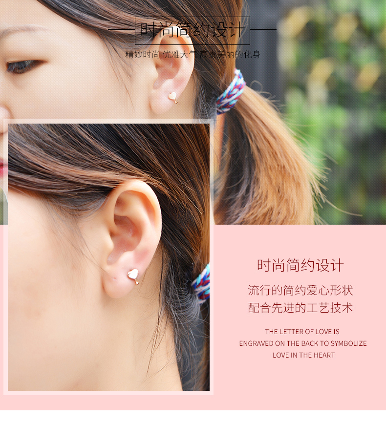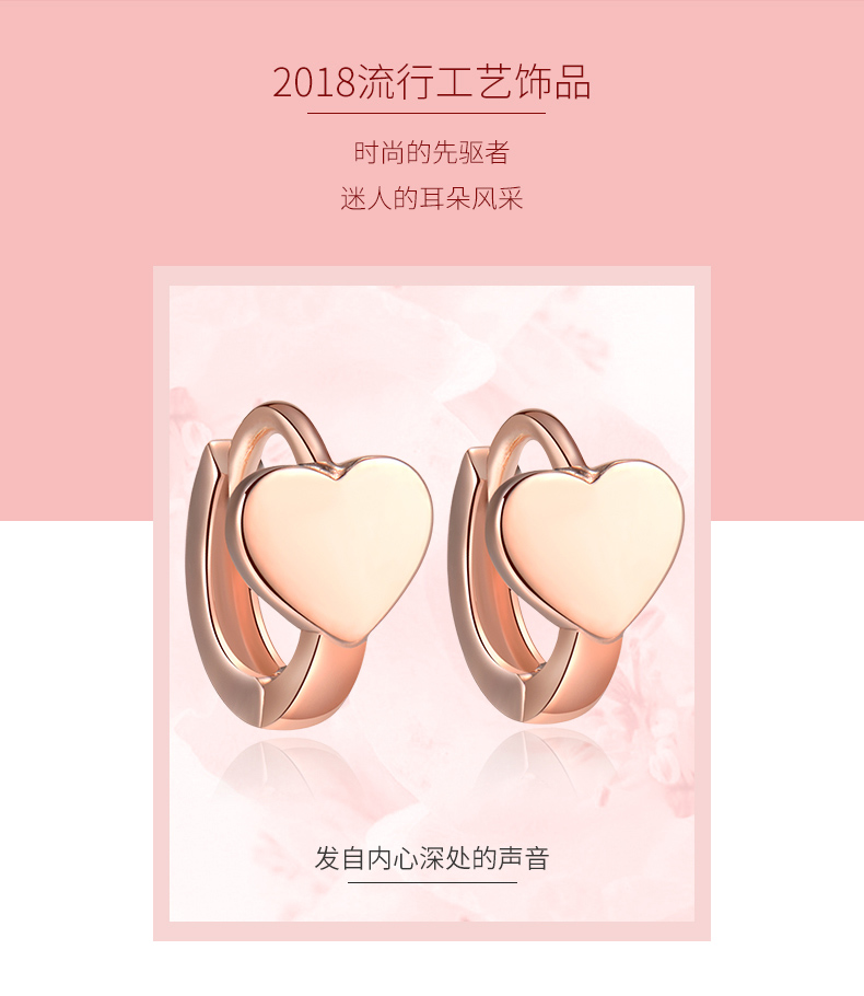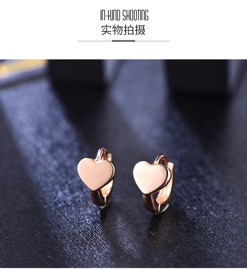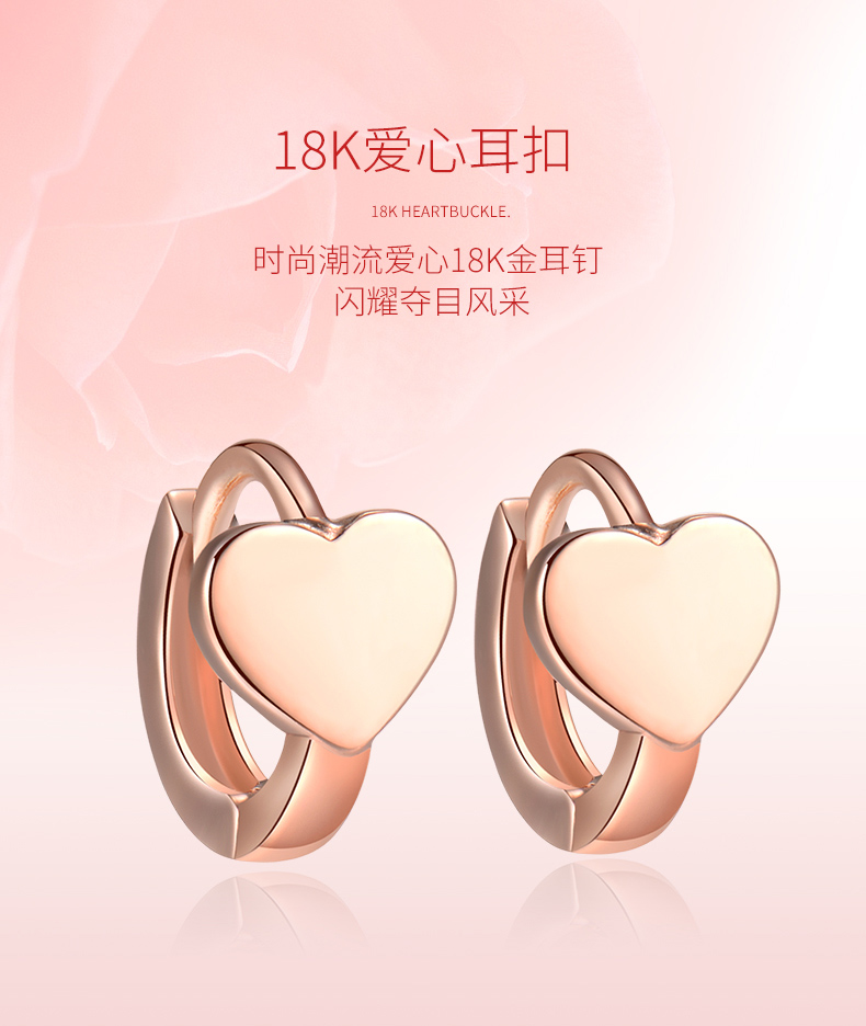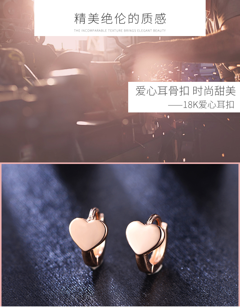 18k金耳扣女玫瑰金迷你爱心耳骨扣日韩时尚简约正品彩金心形耳饰